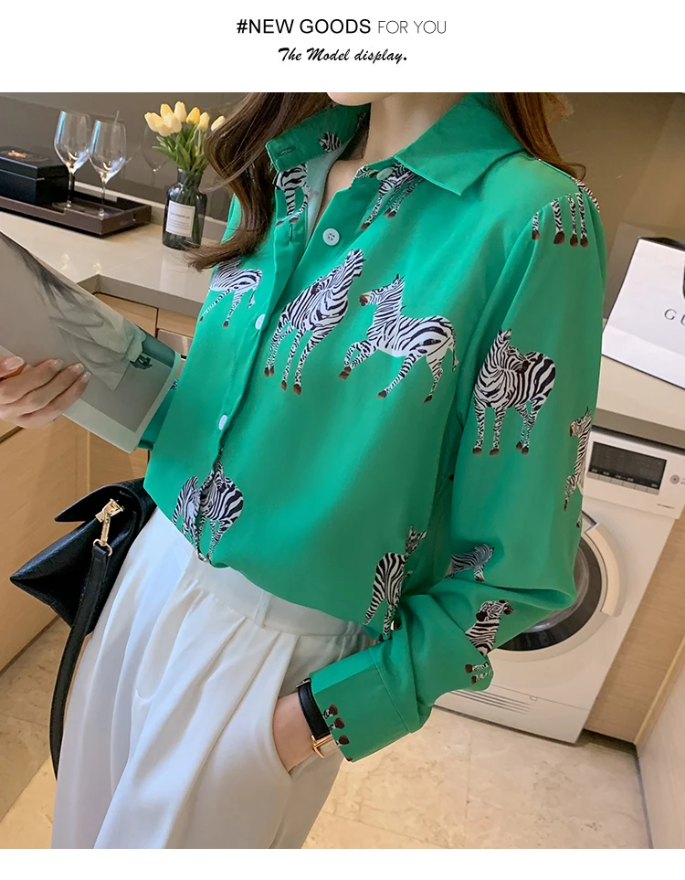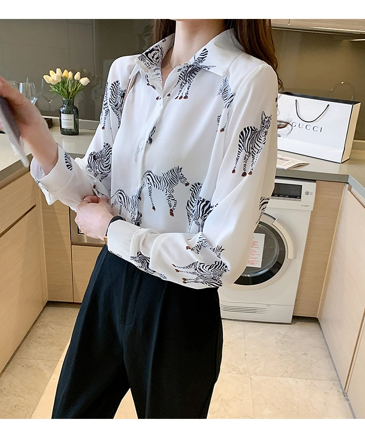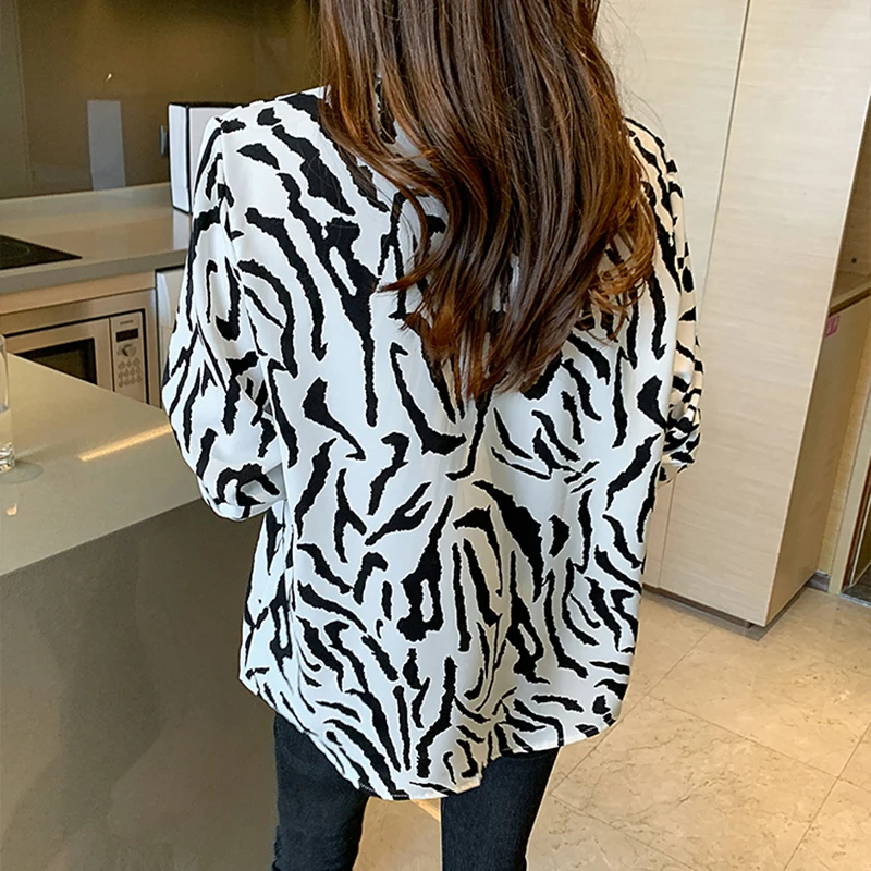 Модные женские рубашки с принтом зебры, женские блузки, весна-осень 2021, рубашки с длинным рукавом, топы, Blusas Mujer