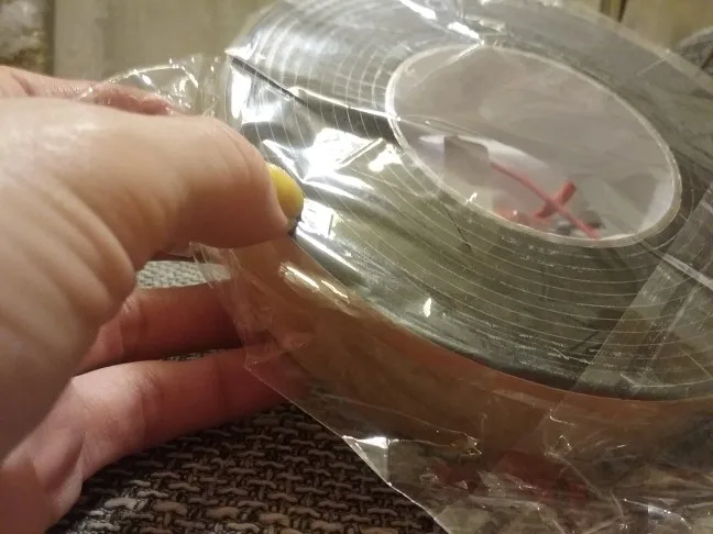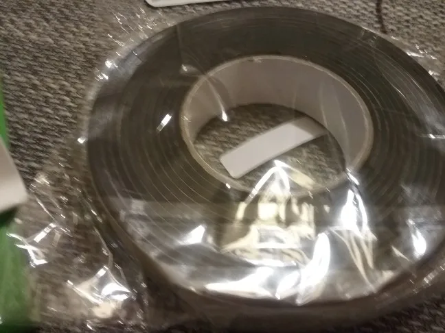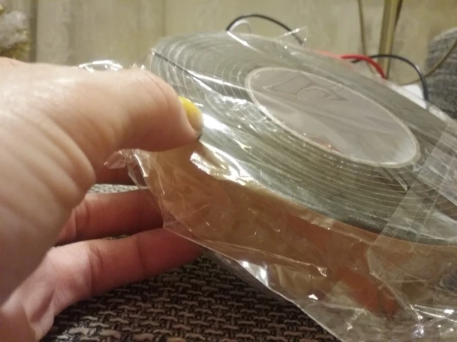 Лента идёт сразу с клейкой стороной при разматывает, фиксируется хорошо, из минусов в конце бобины примерно 15-20 см был брак, тонкая часть отдельно, клейкая отдельно, запаха никакого нет , доставка не быстрая, поэтому лучше заказывать заранее.