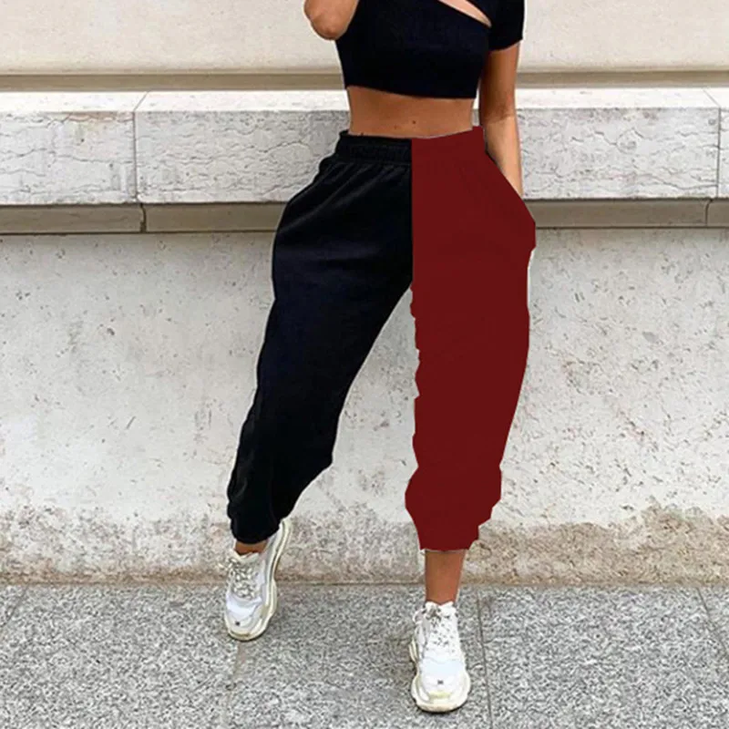 Брюки женские с высокой талией, модные повседневные штаны контрастн...
