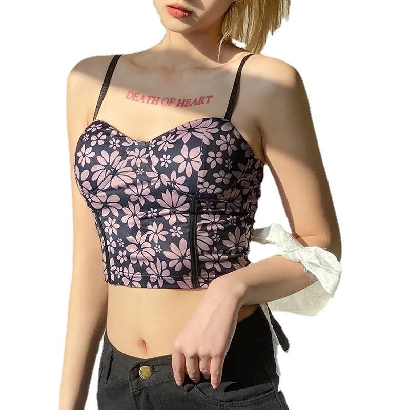Корсет Топ летний Женский Повседневный Топ на бретелях 2021 новый слинг с открытой спиной узор S...