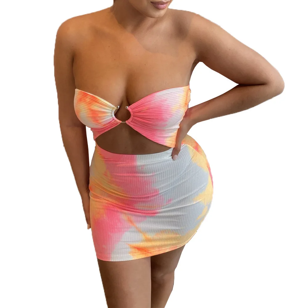 Юбки Женские наборы 2021 летняя одежда Холтер печатных двух частей Мини юбки набор...
