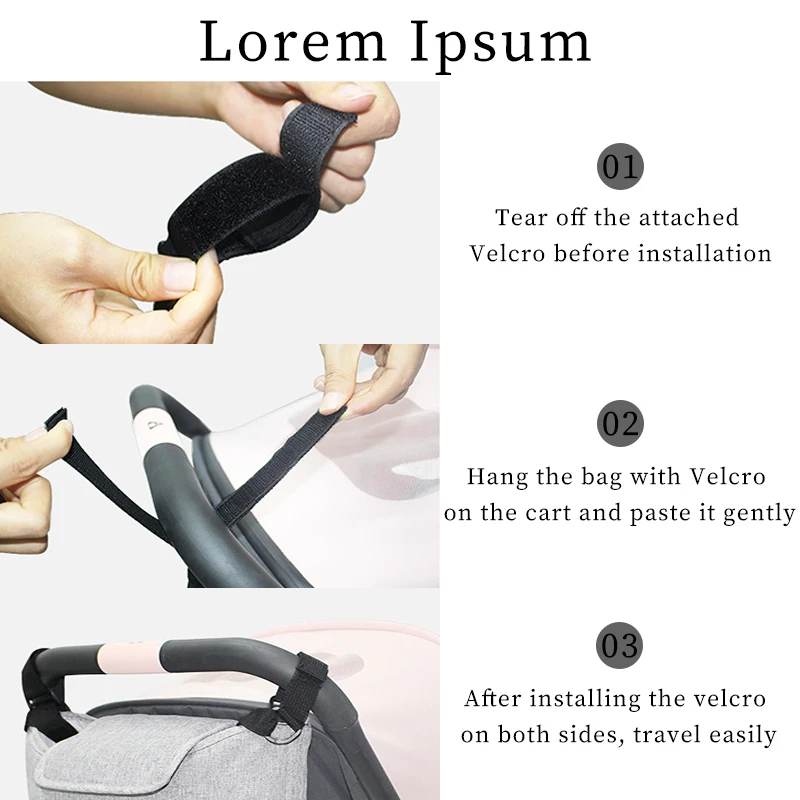 Преимущества продукта1. Внутренняя структура: зона для бутылок с водой, зона для детских бутылок, зона для салфеток, зона для бумажников и место для хранения1, регулируемый плечевой ремень: плечевой ремень можно регулировать по длине, подходит для клиентов различных форм тела, Наплечные накладки могут уменьшить боль в позвоночнике2. Застежка-липучка: длина увеличивается на 12 см, не легко отвалиться и компактнее3, многофункциональная посылка: сумка может держать много предметов, ее можно повесить на корзину, наклонную или ручнуюШаги установки1. Оторвите застежку-липучку перед установкой2. Повесьте сумку на липучке и аккуратно приклейте ее3. Легко перемещается после установки липучки с обеих сторон