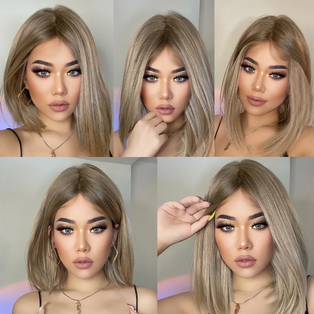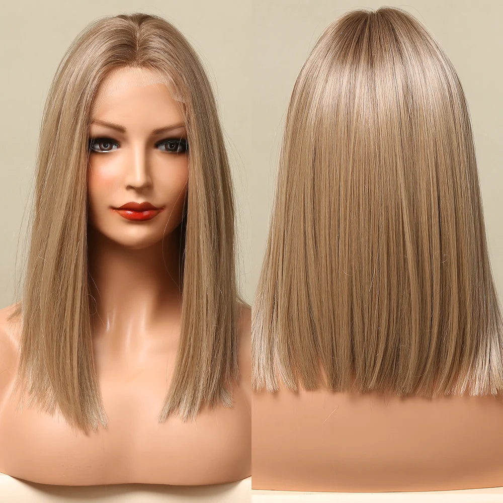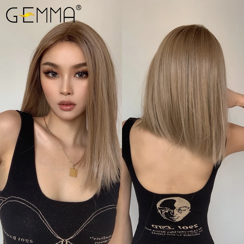 Женские прямые синтетические парики GEMMA со светлыми кружевами спереди, натуральные повседневные парики для косплея, длина плеч, средней части, парик на сетке