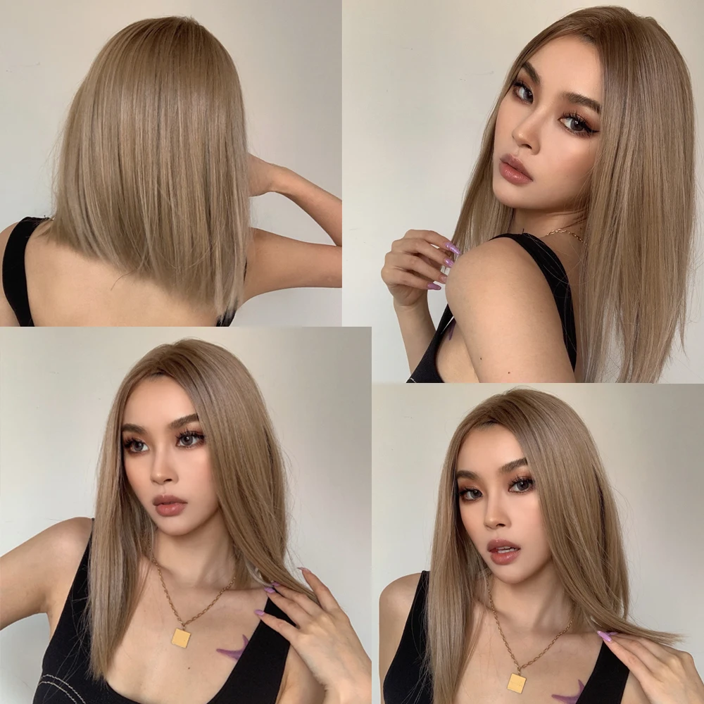 Парики для женщин GEMMA Blonde, прямые синтетические парики для косплея на каждый день, длина плеча, средняя часть, парик с кружевом