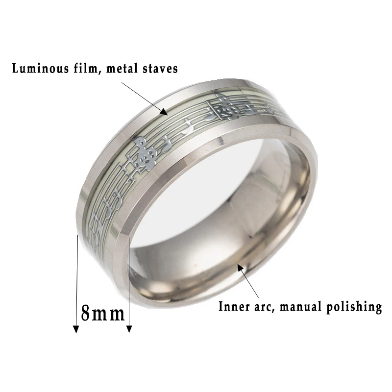 Модное светящееся кольцо на палец из нержавеющей стали для женщин и мужчин, светящееся в темноте музыкальное украшение, подарочные аксессуары