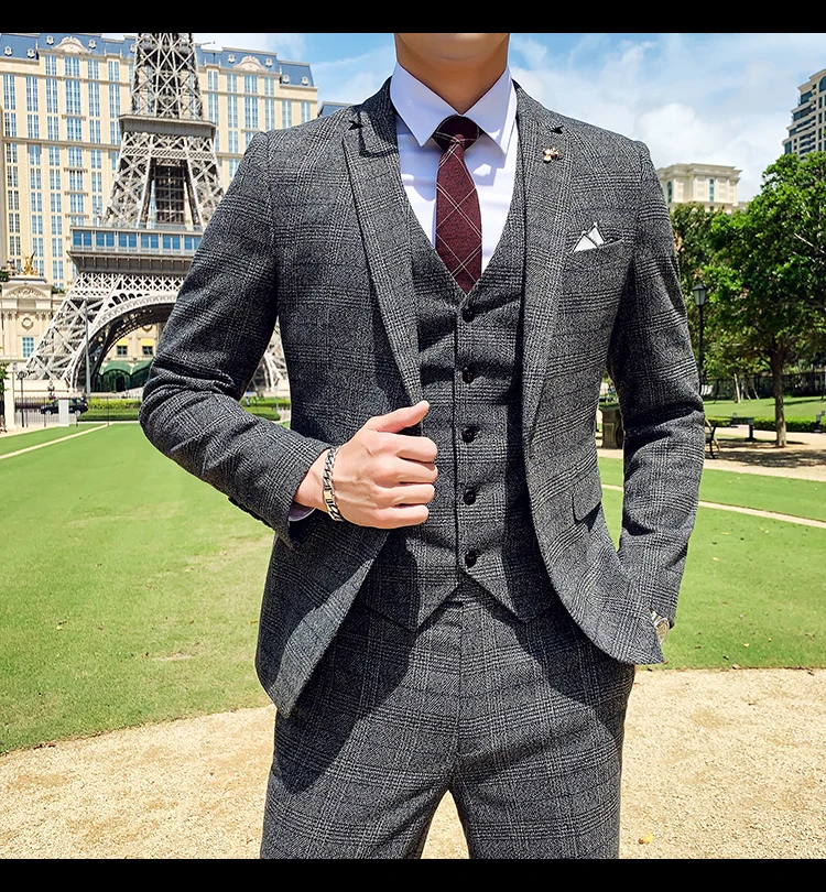 Мужские твидовые темно-серые костюмы из 3 предметов, строгие облега...
