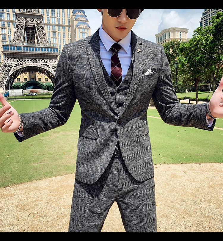 Мужские костюмы из 3 предметов для свадьбы, двубортный Приталенный ...