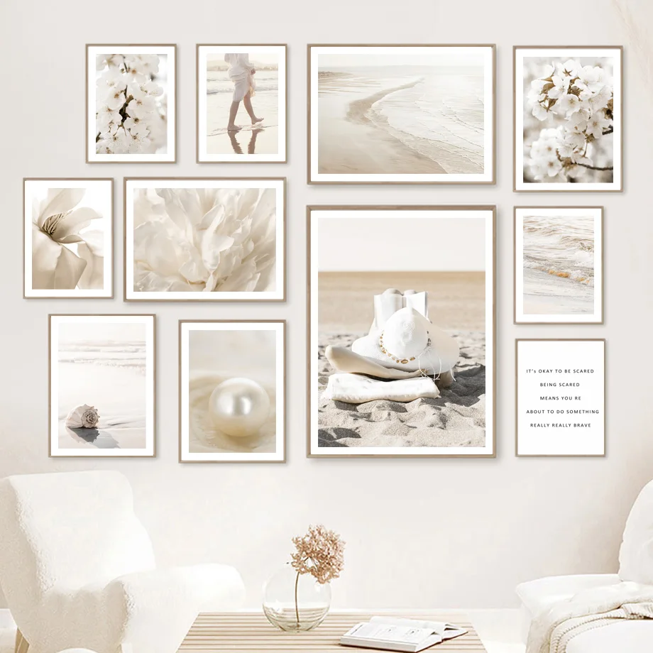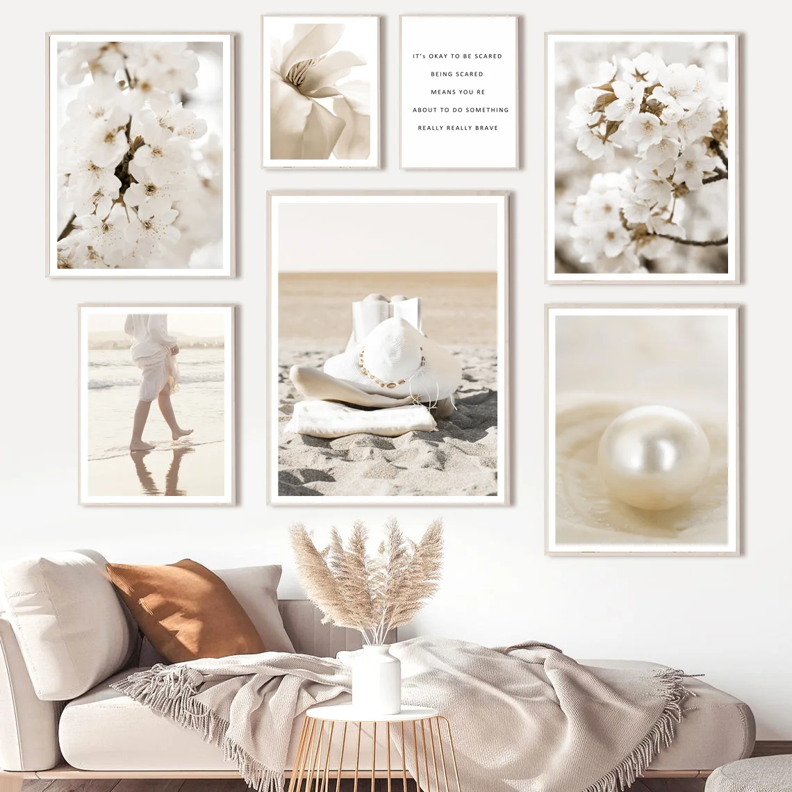 Плакат Штиль пляж для загорания девушки цветок жемчужная раковина в скандинавском стиле настенный художественный принт Картина на холсте настенные картины для декора гостиной