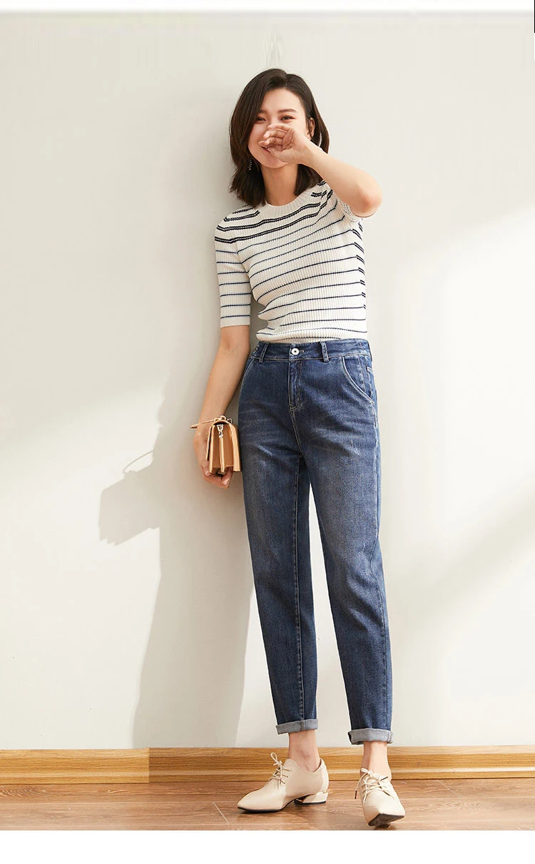 Джинсы женские с высокой талией, свободные брюки-султанки, длинные ...
