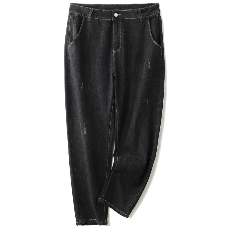 Женские джинсы с завышенной талией, повседневные длинные джинсовые шаровары на пуговицах, синие, серые, 6xl, 7xl, 8xl, женские джинсы с потертостями, 2021
