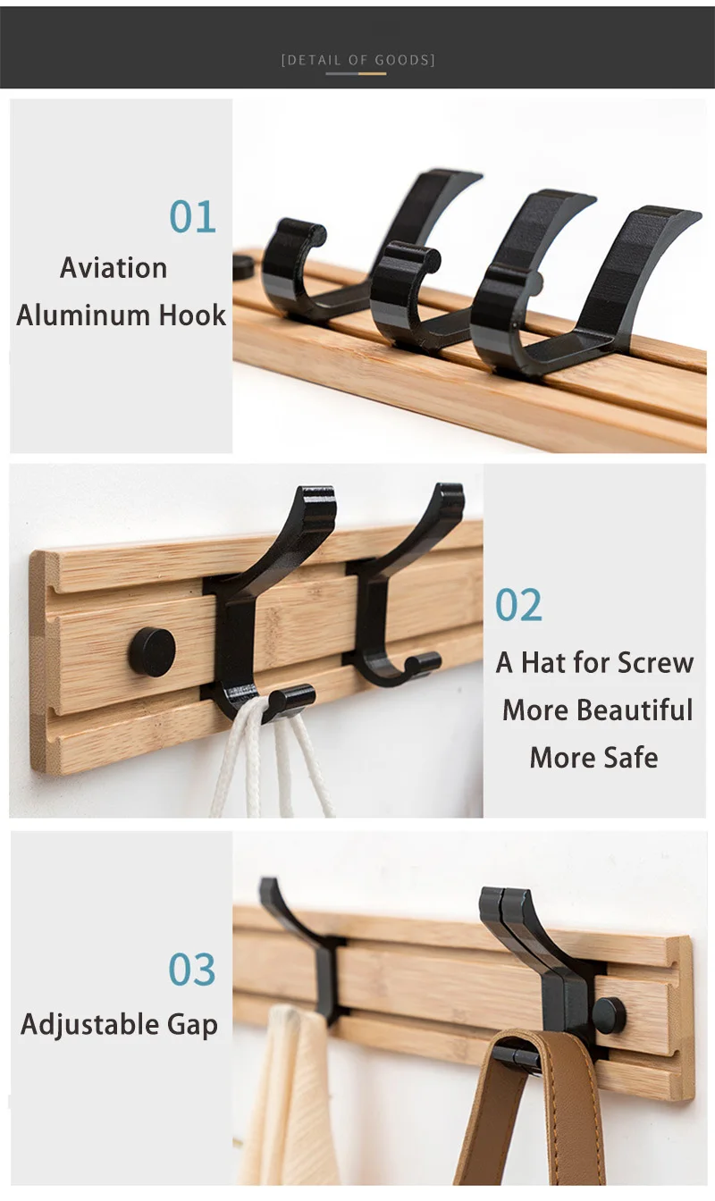 Особенности:Подвижный Настенный дизайн, экономит пространство.Удобно и подходит для хранения.Идеально подходит для использования в спальне, ванной, шкафах, дверях и стенеМногократное использование: новый дом для лица, полотенце для рук, банные полотенца, пальто, шляпы, сумки, зонты, сумка для стирки и ключи. Даже отличный выбор, чтобы повесить большое зимнее пальтоКаждая стойка имеет 2 способа установки, один клей или жидкий клей без ногтей, один винт. Винтовое сверло более надежное, чем клейКрючки изготовлены из авиационного алюминия, они намного дороже, чем обычные-алюминий, но они более доступны для тяжелых предметов, которые вы можете использовать с нашими Вешалками Для пальтоСпецификация:Цвет: бамбуковый цветМатериал: бамбуковое дерево + авиационный алюминийРазмер:3 крючка: 6*30*1,2 см4 крючка: 6*401,2 см5 крючков: 6*50*1,2 см6 крючков: 6*60*1,2 см