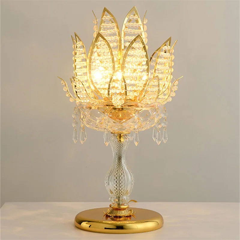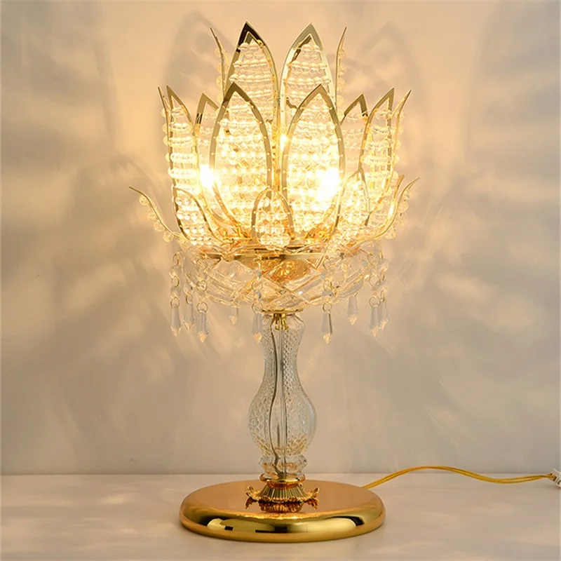 Роскошные золотые настольные лампы OUFULA, современные светодиодные креативные Настольные светильники с кристаллами в форме лотоса для украшения дома и спальни