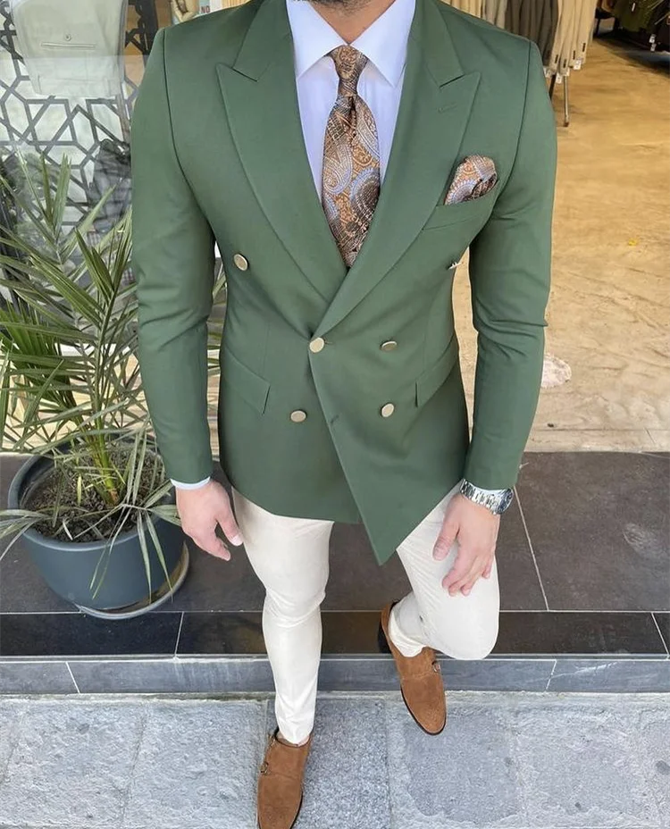 Зеленый Блейзер с белыми брюками, мужской костюм для свадьбы, мужск...