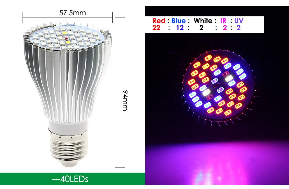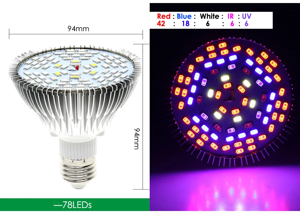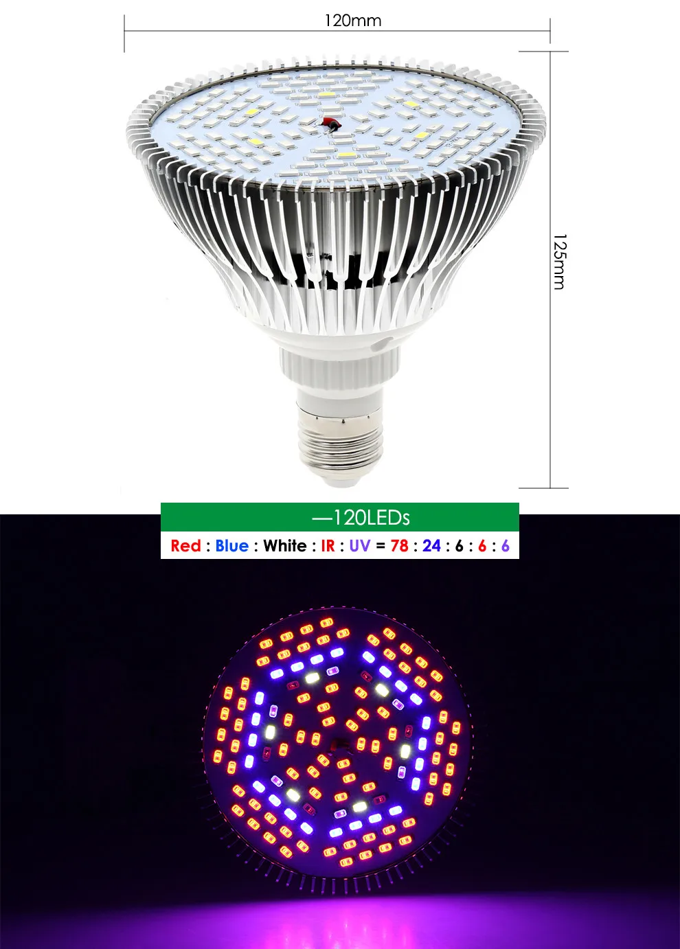 Фитолампа полного спектра, 18284078120 светодиодов, E27, E14, GU10