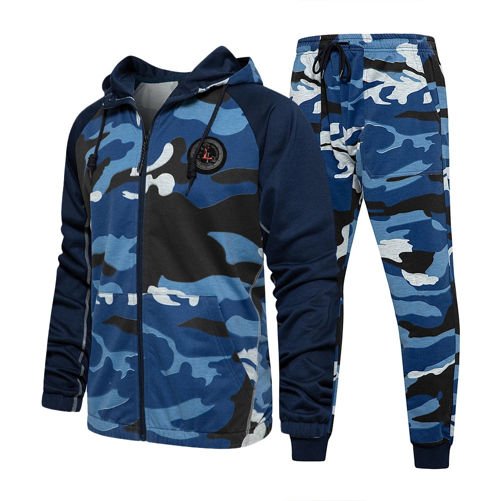 Мужской спортивный костюм из 2 предметов, повседневная камуфляжная ...