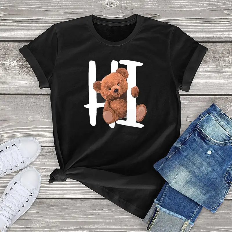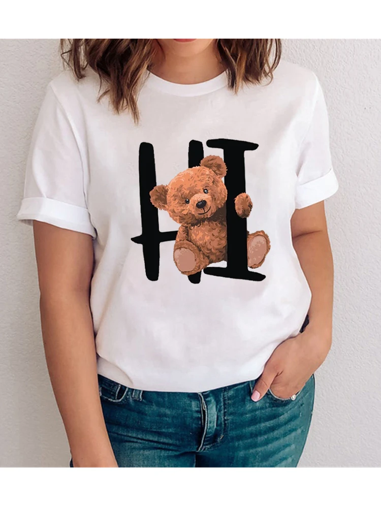 Футболка с рисунком медведя из 100% хлопка Kawaii женская одежда 2021 винтажная женская футболка с принтом медведя Say Hi для девочек 90s, Футболки унисекс, блузки 3XL