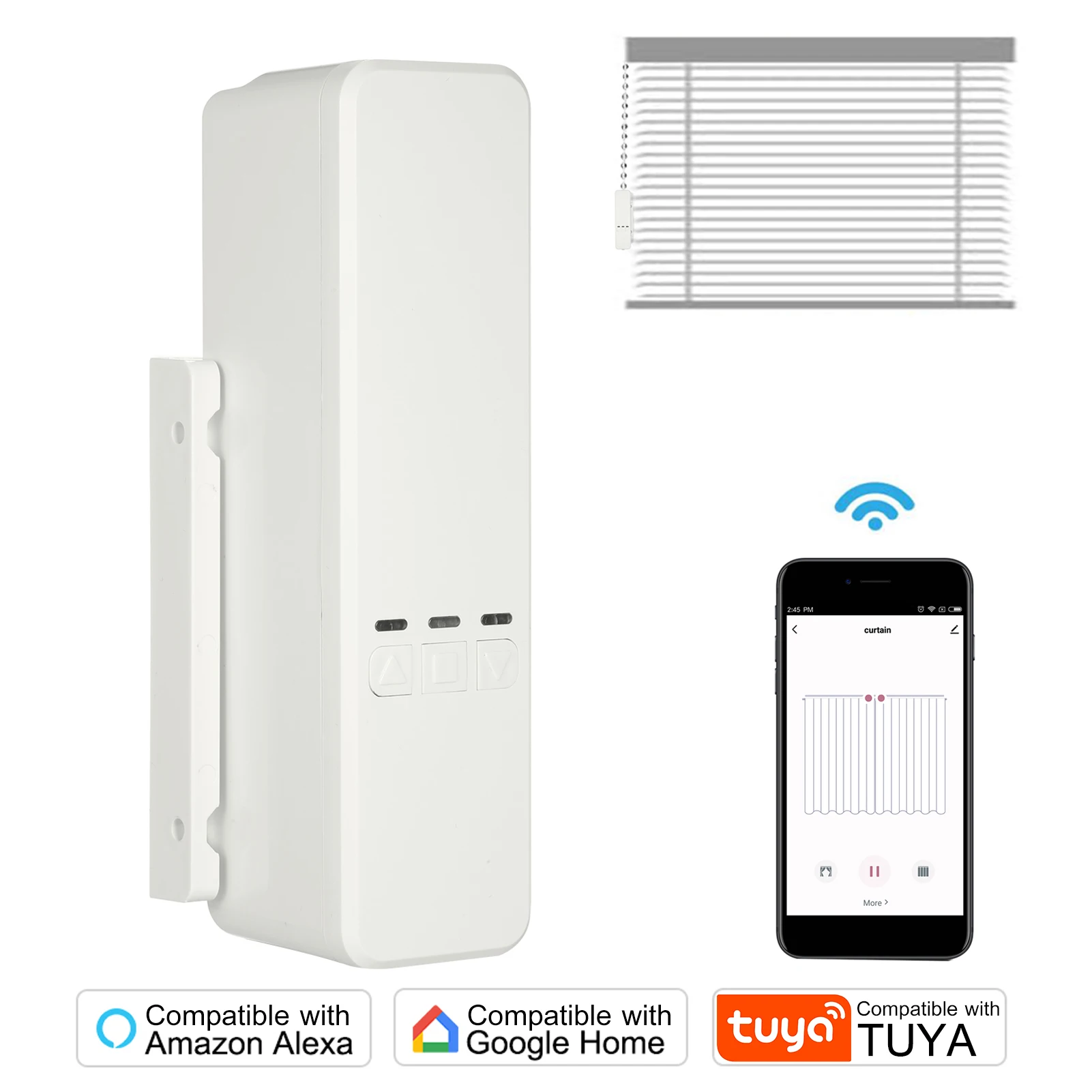 Ручные жалюзи, управляемые цепочкой, с нашим контроллером, открываются и закрываются автоматически. С приложением или пультом дистанционного управления.Управление приложением: пульт дистанционного управления в приложении tuya / Smart Life, который можно получить непосредственно из APP store.Расписание: настройка времени, как вам нравится, открытие при восходе и закрытие при закатеСемейный обмен: совместно используемое устройство для вашей семьи, чтобы контролировать его в каждом телефонеПульт дистанционного управления: Встроенный радиочастотный чип Dooya. Можно использовать радиочастотный пульт (включая)