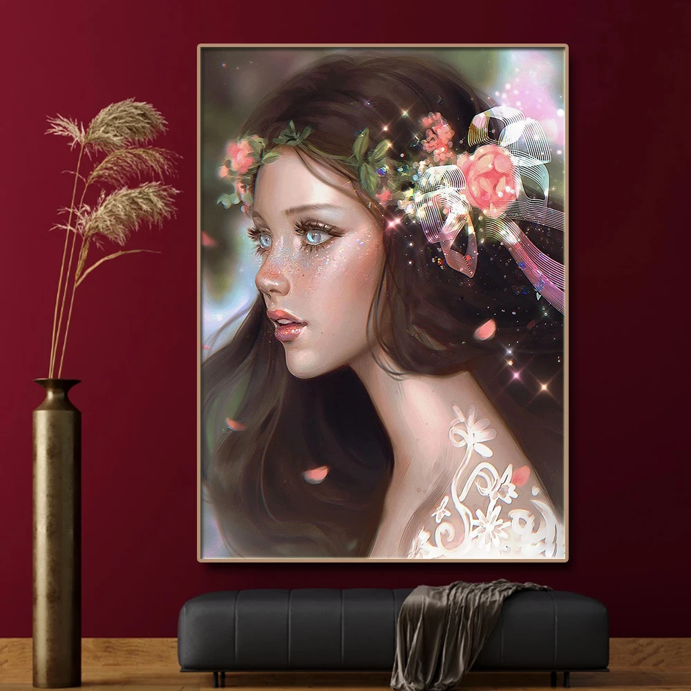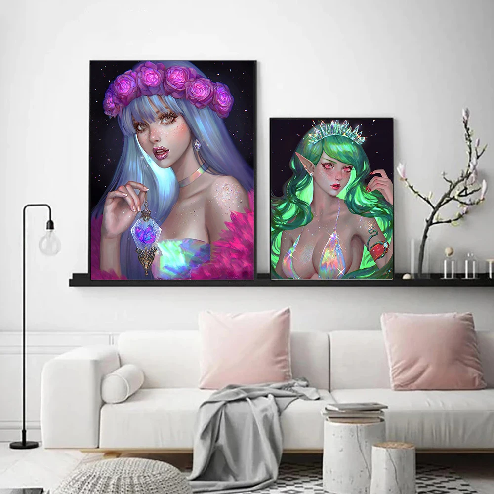 5D Diy алмазная живопись красивая женщина эльф цветок сказочное иск...
