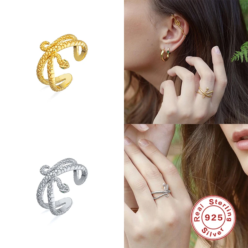 BOAKO золотые кольца в виде змейки Для женщин девочек 925 Серебряно...