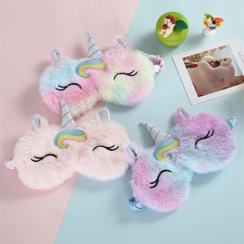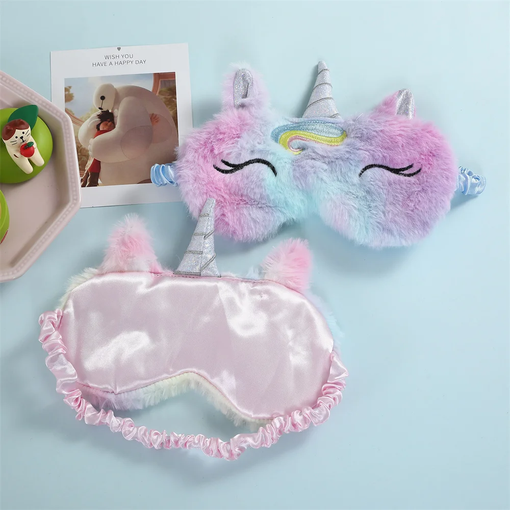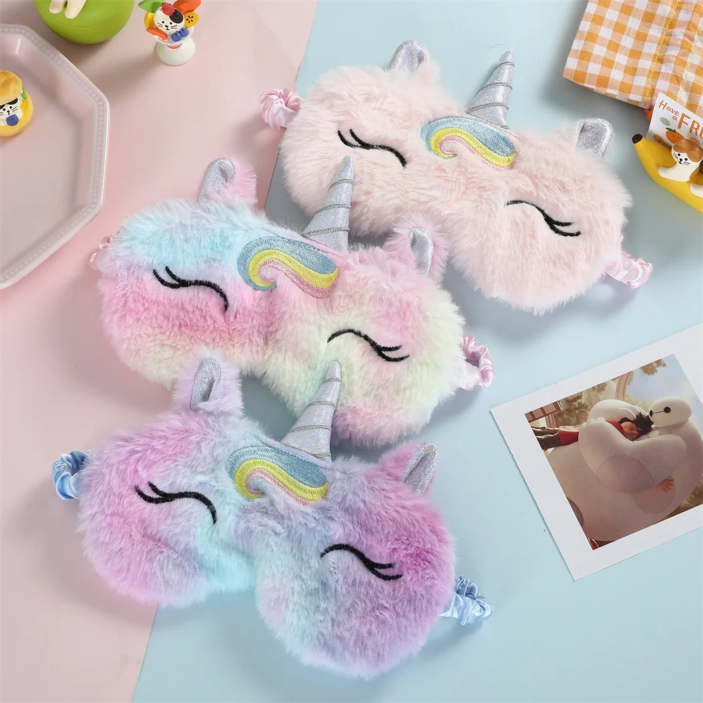 Плюшевая маска на глаза для девочек с единорогом, детская затеняющая маска с вышивкой, 3d мультяшная повязка на глаза, расслабляющая маска для путешествий, домашвечерние, подарки