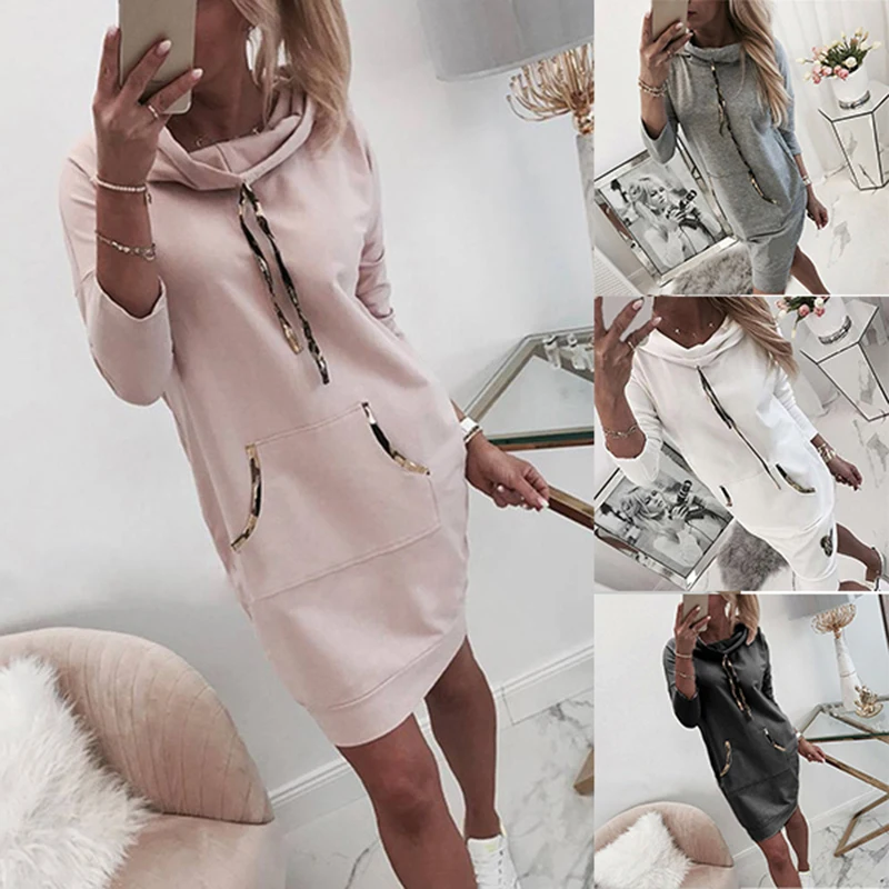 Женское Хлопковое платье-толстовка с капюшоном, с карманами