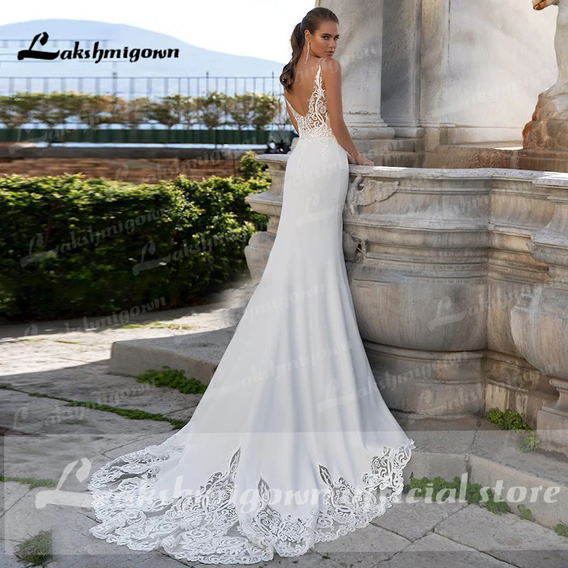 Женское свадебное платье с юбкой-годе, кружевное пляжное платье с открытой спиной и V-образным вырезом, платье в богемном стиле со шлейфом, 2021