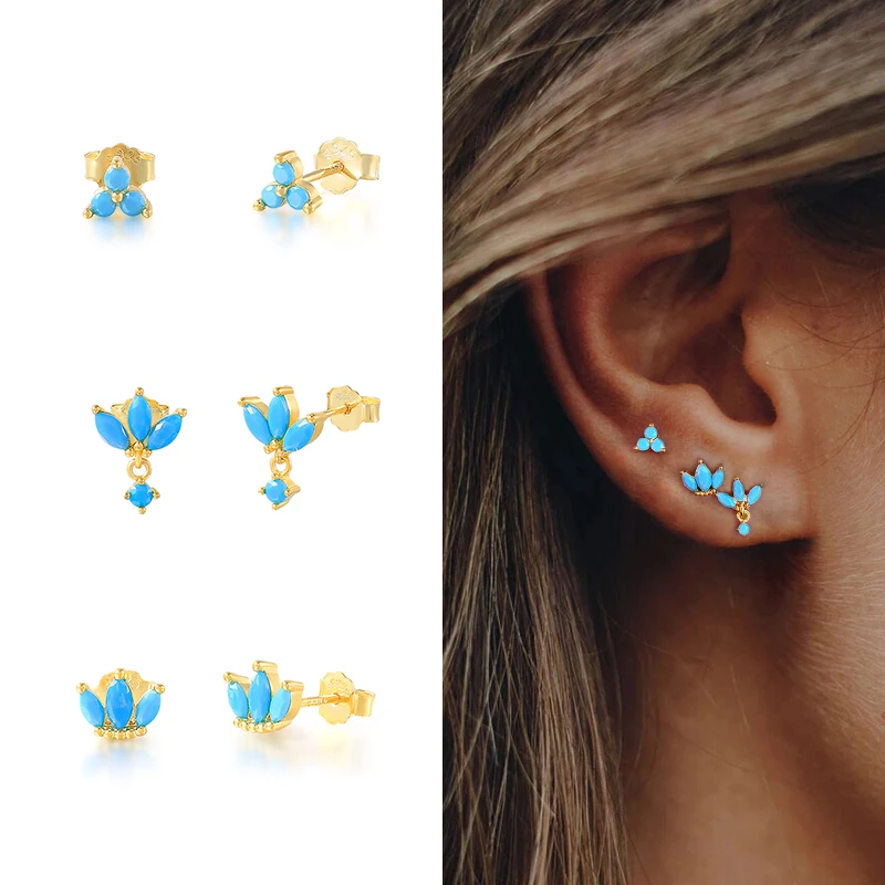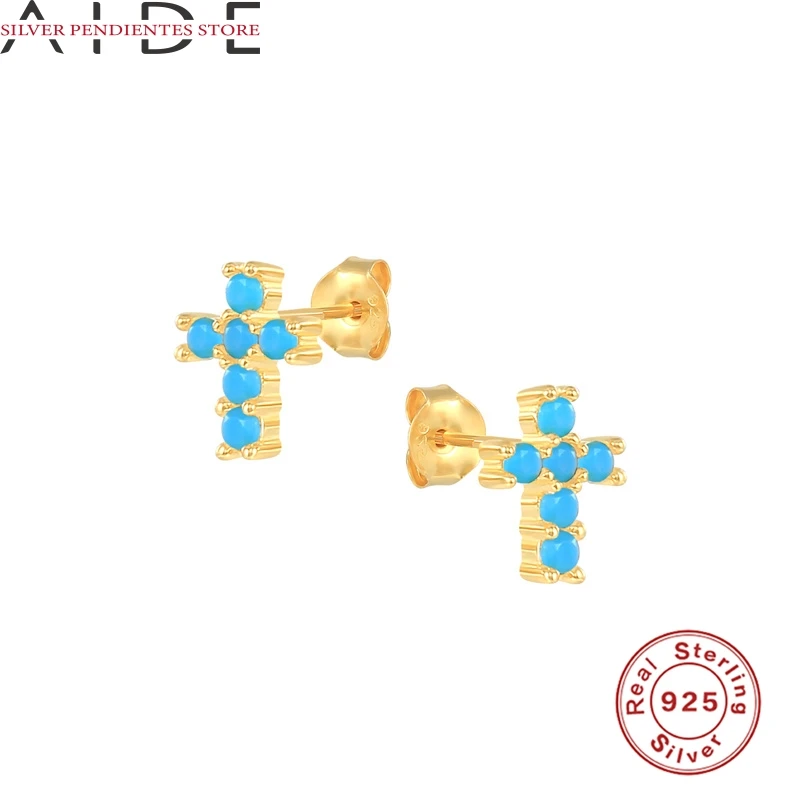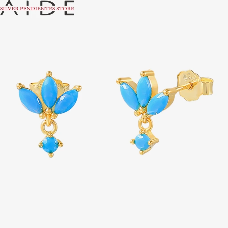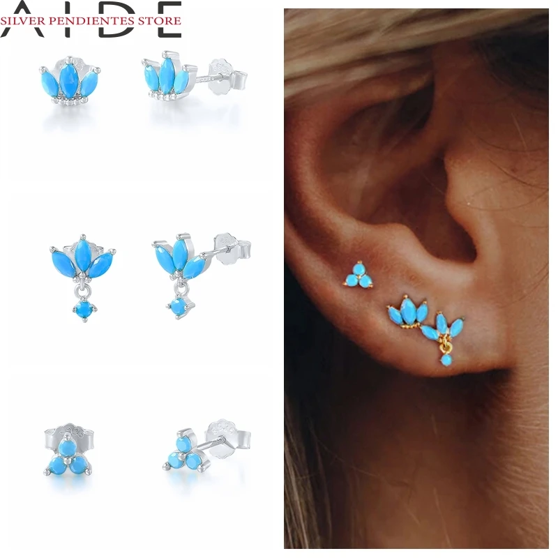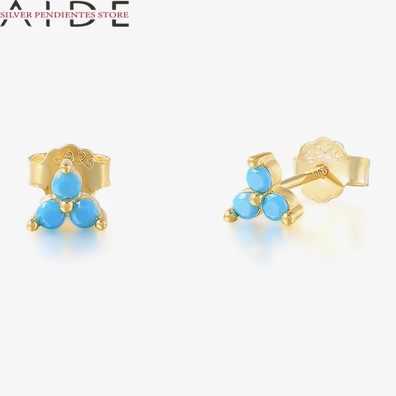 Женские серьги-гвоздики AIDE из стерлингового серебра 925 пробы с бирюзой, Минималистичная Золотая Серебряная серьга Pendientes Plata