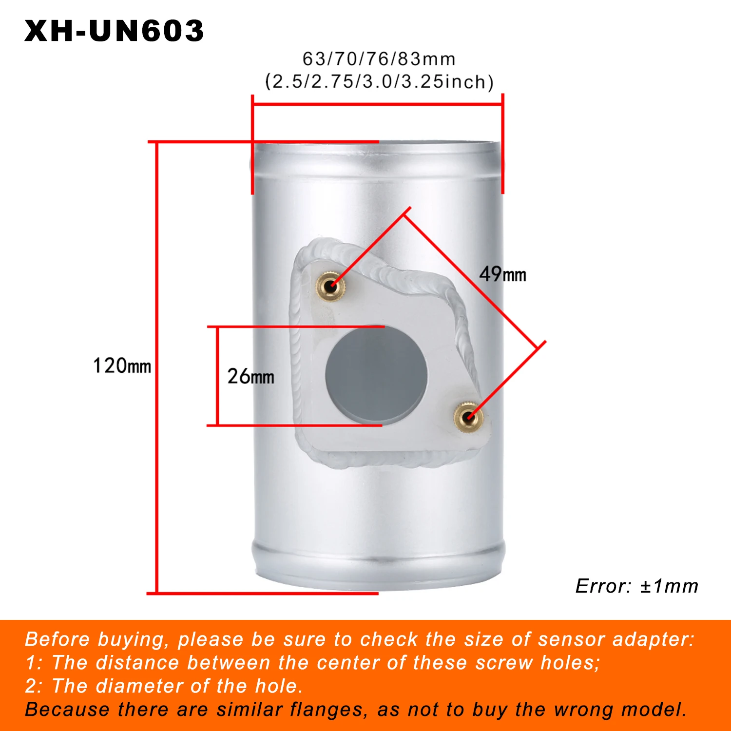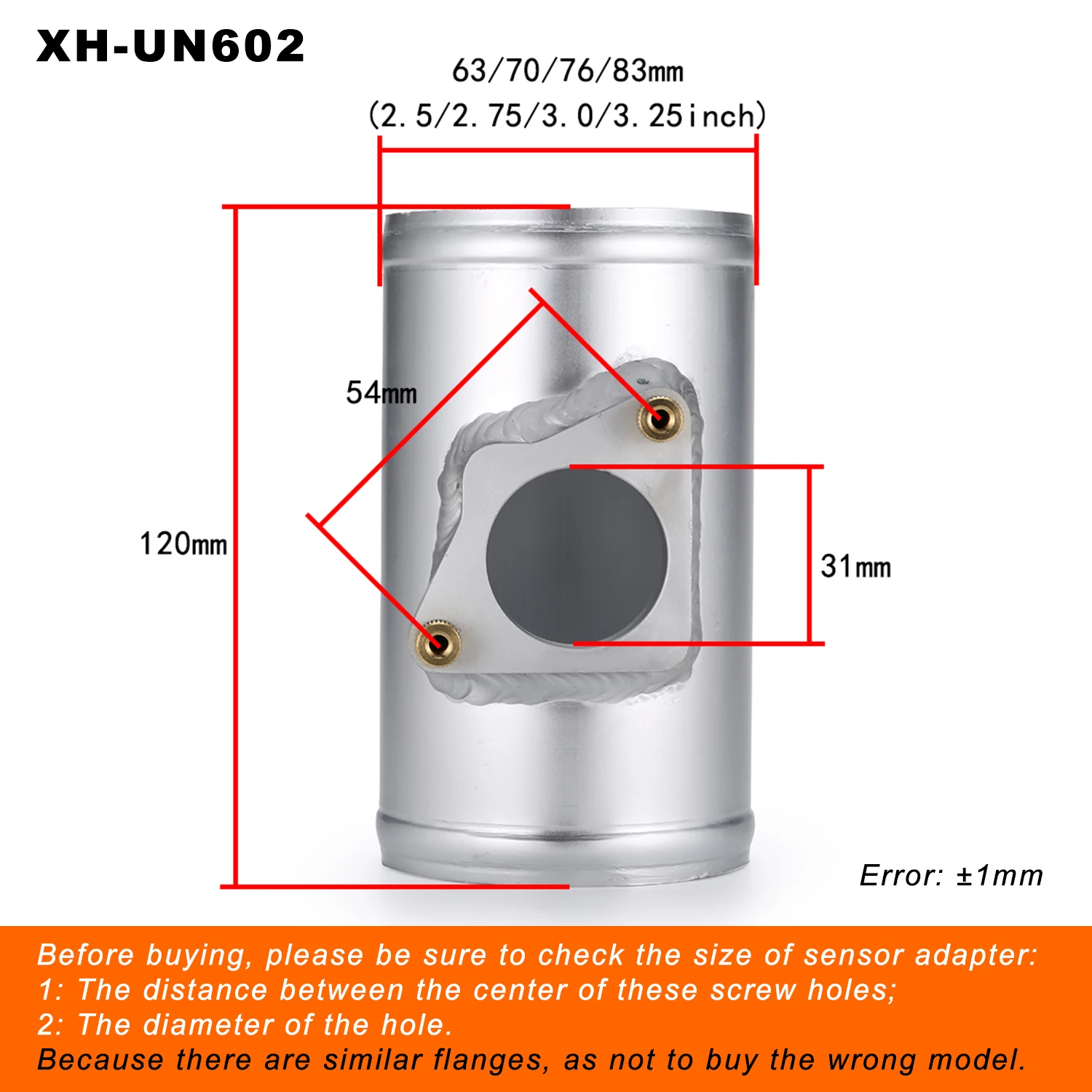 Название продукта: крепление датчика воздушного потокаМатериал: алюминийРазмер трубы: как показано на рисункеОсновной цвет: серебристыйВес: 300 г