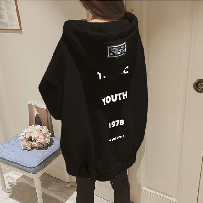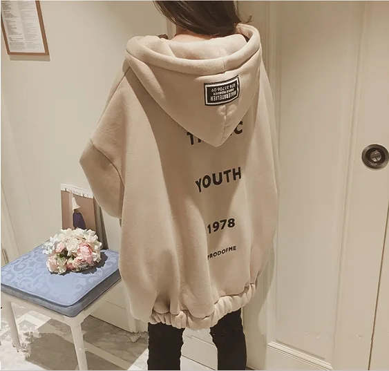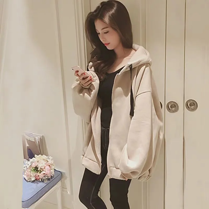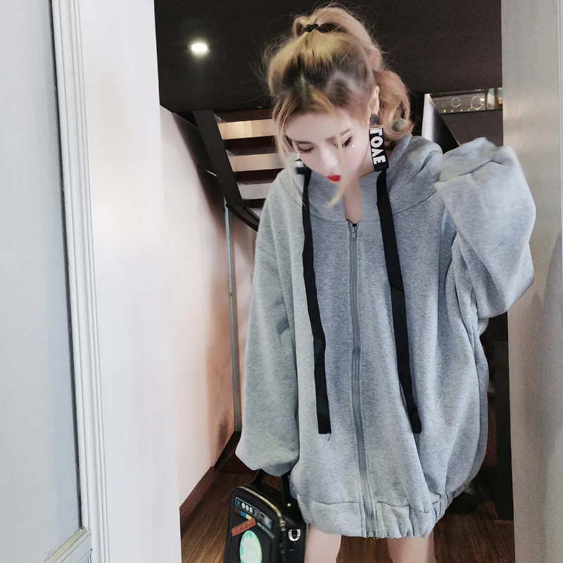 Женская толстовка с капюшоном, Осень-зима 2020, Свитшот из искусственной овечьей шерсти, Корейская версия, свободный толстый свитшот на молнии с бархатной подкладкой