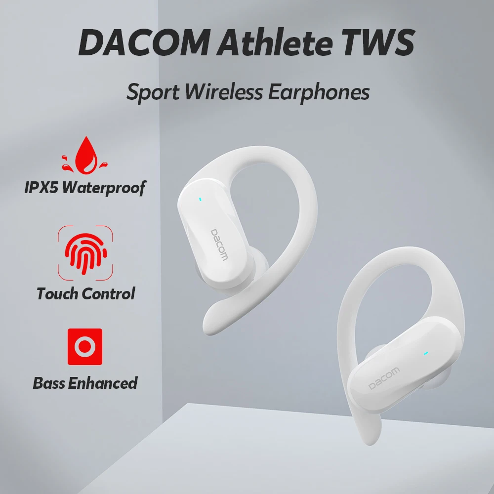 DACOM G05 TWS Спортивные Bluetooth наушники, настоящие беспроводные стерео наушники, спортивные наушники, ушные крючки, гарнитура для бега с микрофоном для iPhone Samsung