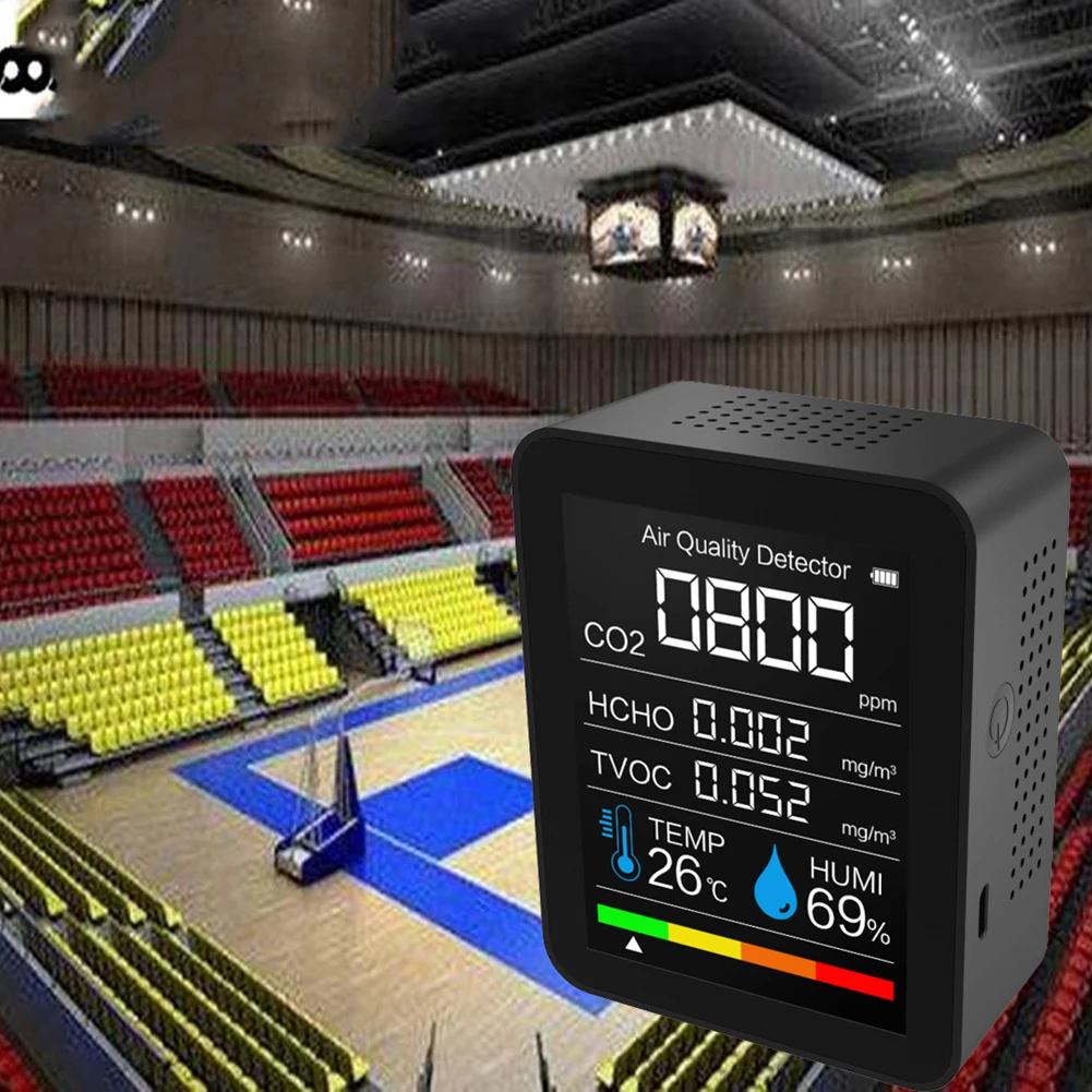 Детектор углекислого газа инструмент Крытый теплица склад температуры влажности воздуха монитор качества CO2 TVOC детектор формальдегидаХарактеристика:1. Стабильная производительность и высокая точность.2. 3,5-дюймовый цветной ЖК-дисплей экран, светильник вес, легко носить с собой и приятный на ощупь.3. Большая емкость, 3,7 V/2000mAh литиевая батарея, используется для долгое время.4. Трехсторонняя пористая конструкция позволяет в режиме реального времени контролировать углы.5. Он может быть заряжен адаптером питания, блоком питания или компьютерными помехами, что экономит много затрат.Спецификация:Тип датчика: полупроводниковый/инфракрасный (опционально)Материал: АБС-пластикРазмер: 143*97*75 мм/56,30*38,19*29,53 дюймаИспользование: подходит для семей, детских спален, офисов и лабораторий.Примечание:В связи с различиями мониторов и эффектами освещения реальный цвет товара может немного отличаться от цвета на фотографиях. Спасибо!Возможны отклонения в 1-2 см вследствие измерений вручную.
