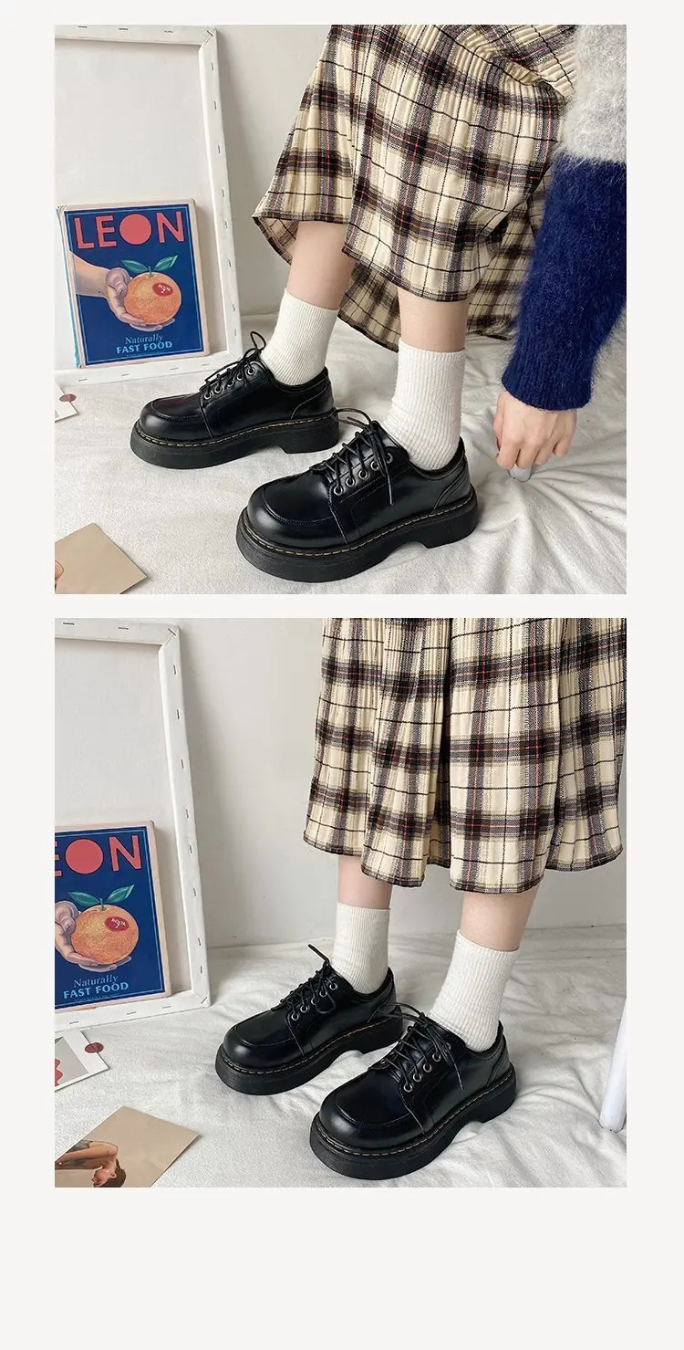 Женские туфли на шнуровке, черные удобные кожаные туфли в британском стиле, повседневная обувь, 2022