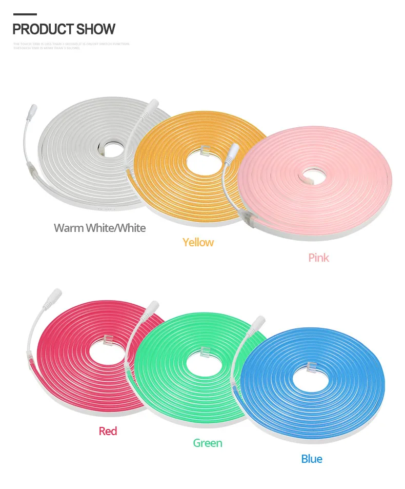 Тип: мягкий гибкий светодиодный неоновый светильникВходное напряжение: DC12VСветильник Цвет: теплый белый/красный/зеленый/синий/розовый/желтыйУгол луча: 180 градусовДлина ленты: 1 м/2 м/3 м/4 м/5 мШирина полосок: 10 ммМощность: 6 Вт/мВодонепроницаемый: водонепроницаемый IP67Можно резать единица измерения-сантиметр 2,5 см (на маркировку интервалы)Угол луча: 180 градусовДлительный срок службы:> 50000 часов