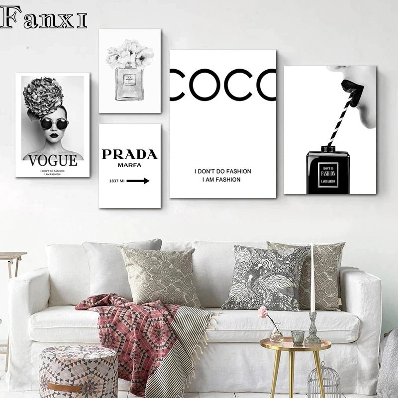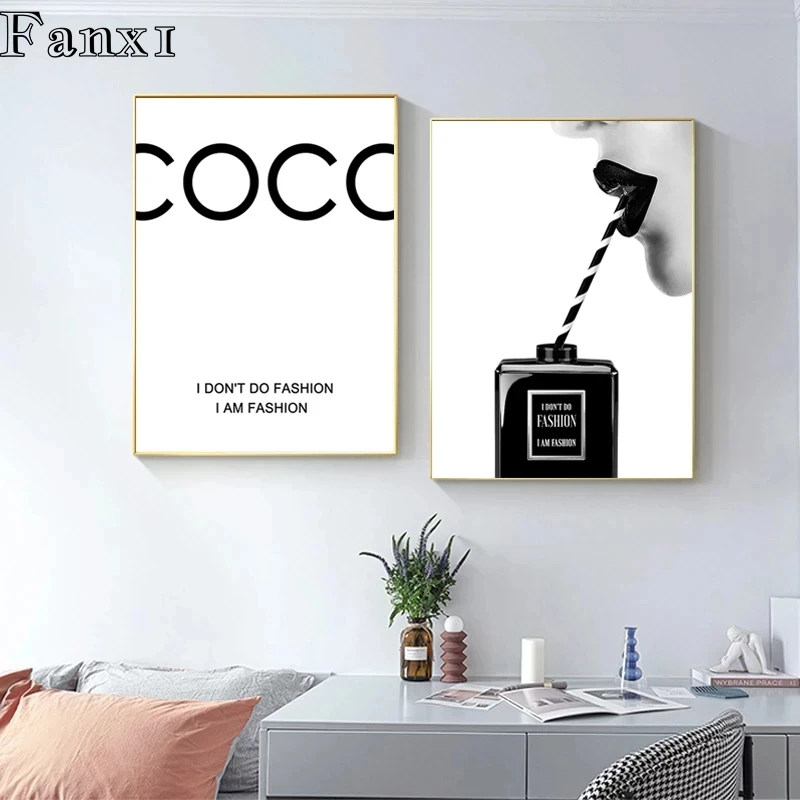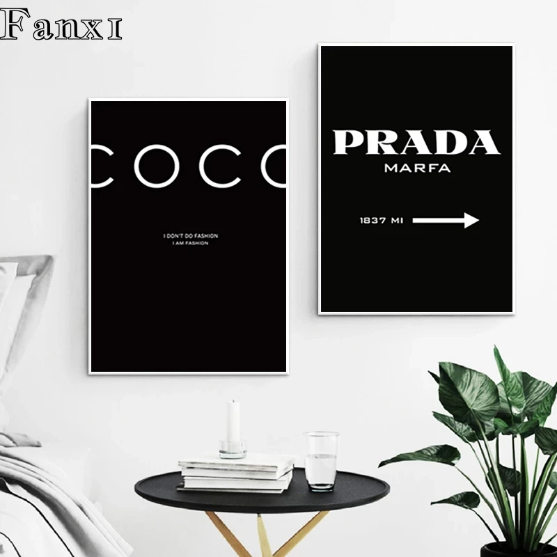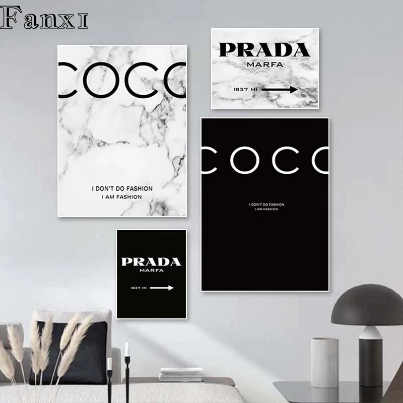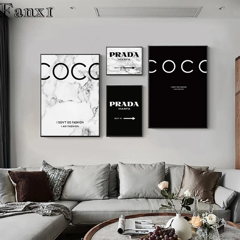 Плакаты и принты с надписью Marbling and Coco Parda, современный домашний Декор, живопись на холсте Pop, черный, белый, Vogue, Настенная картина для