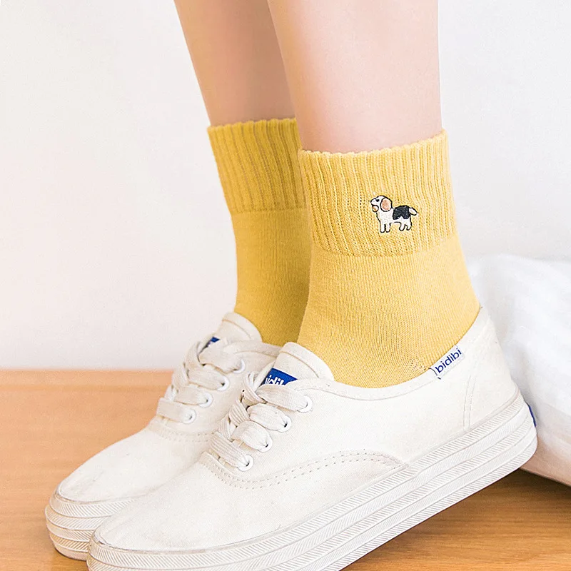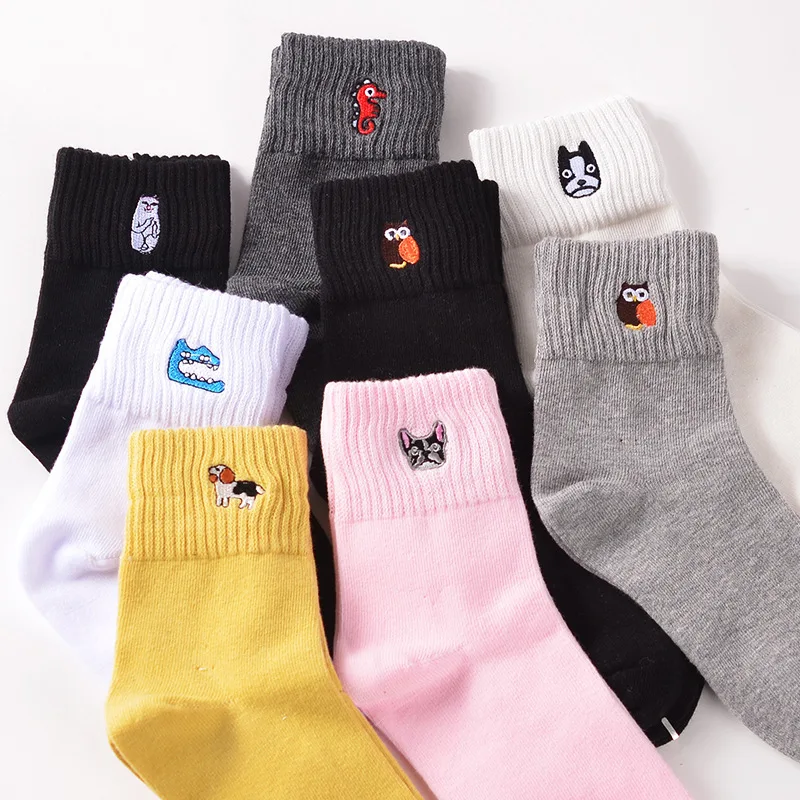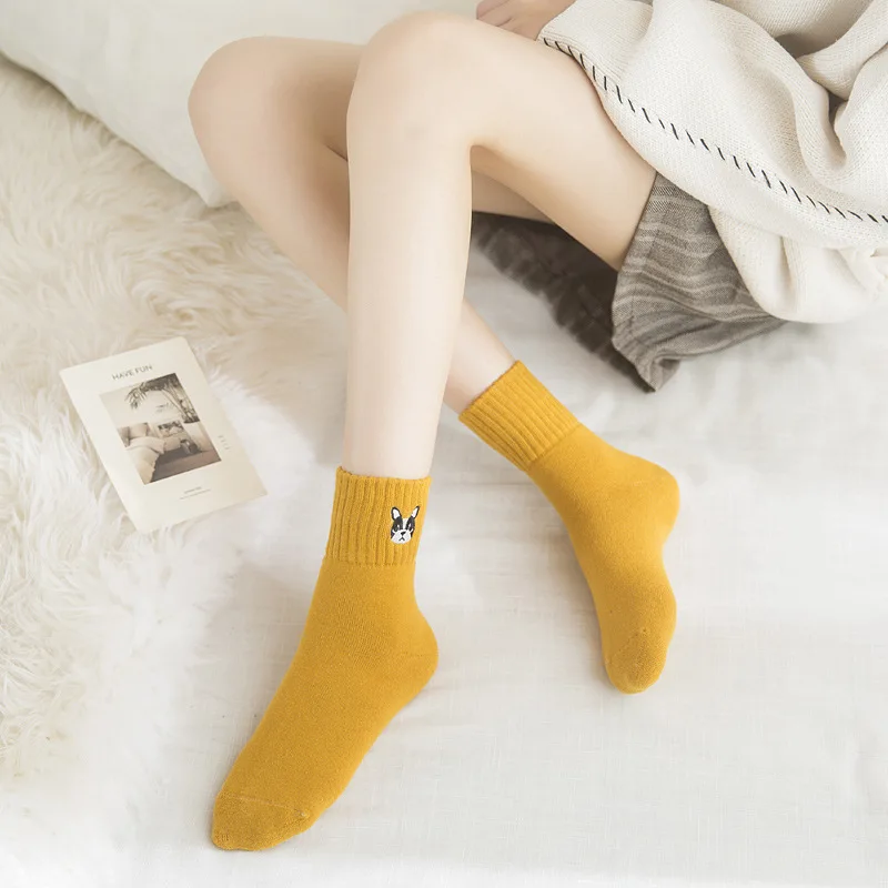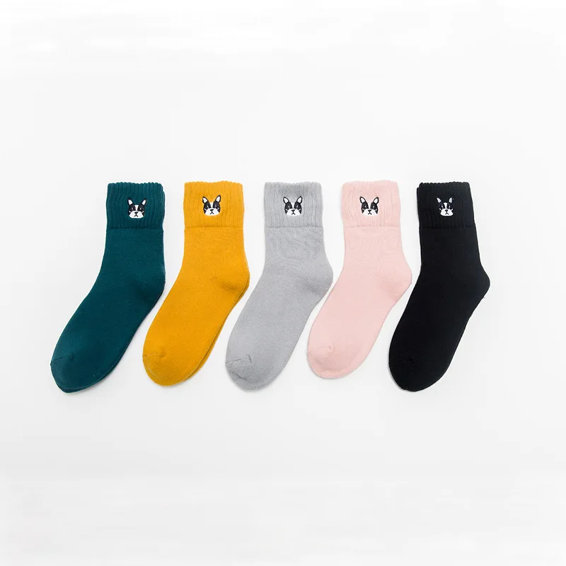 Женские теплые носки с вышивкой в виде животных, дизайнерские Носки с рисунком французского бульдога