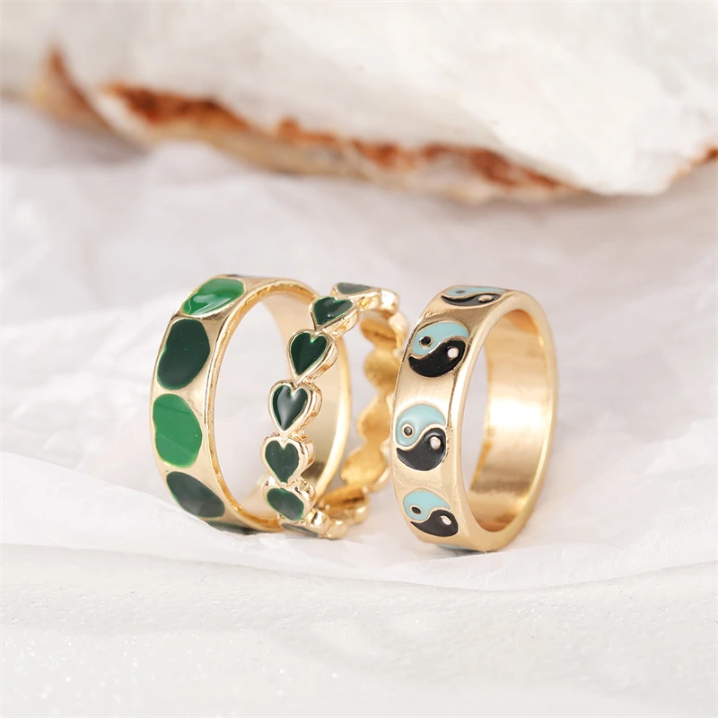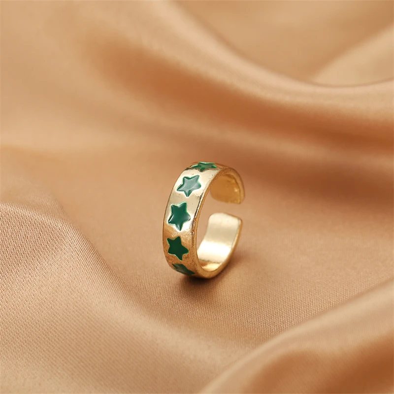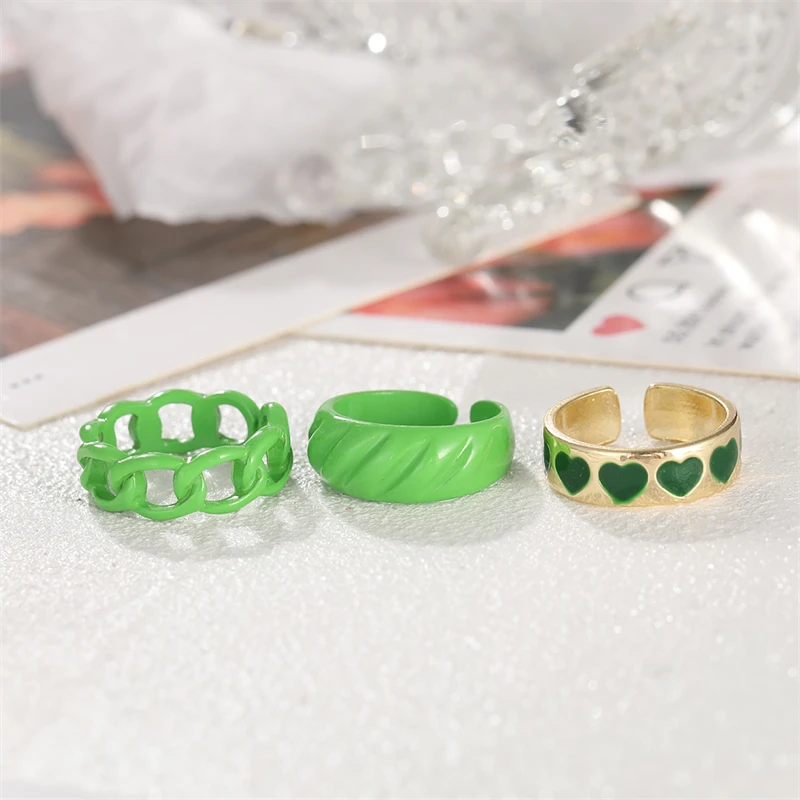 Модный зеленый цвет, стандартный набор для женщин, винтажная Регулируемая металлическая цепочка, Открытое кольцо, оптовая продажа ювелирных изделий