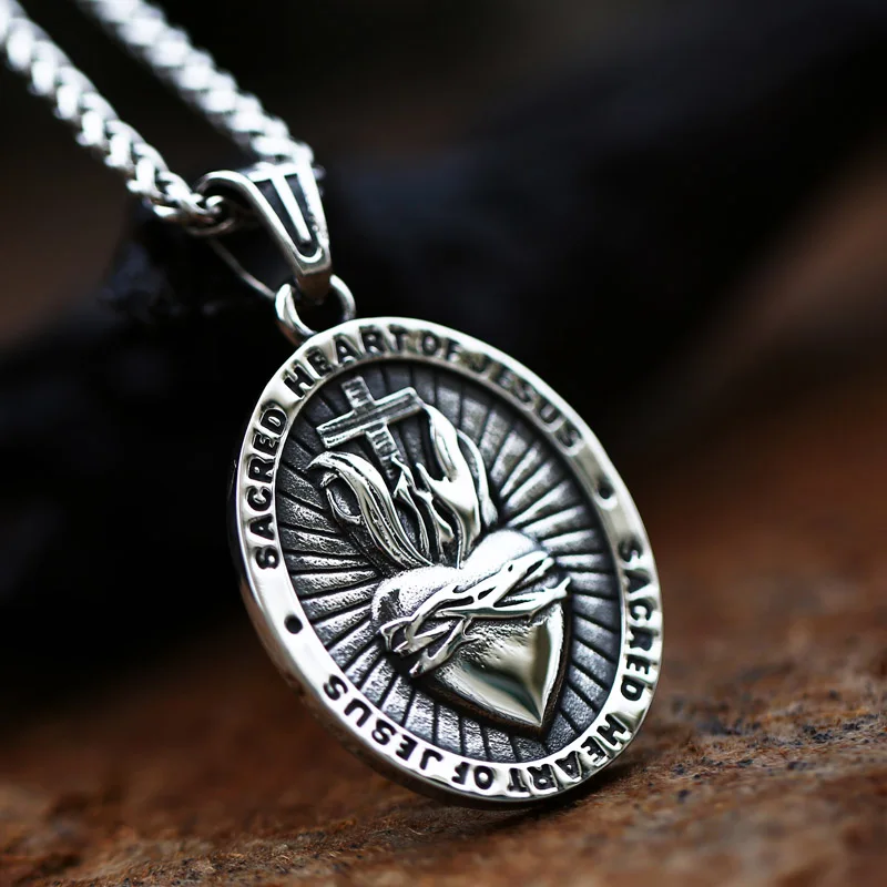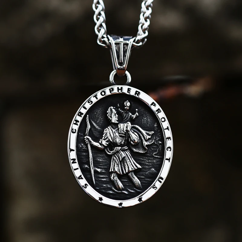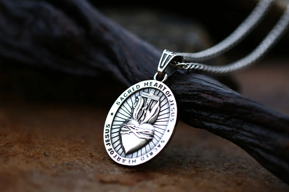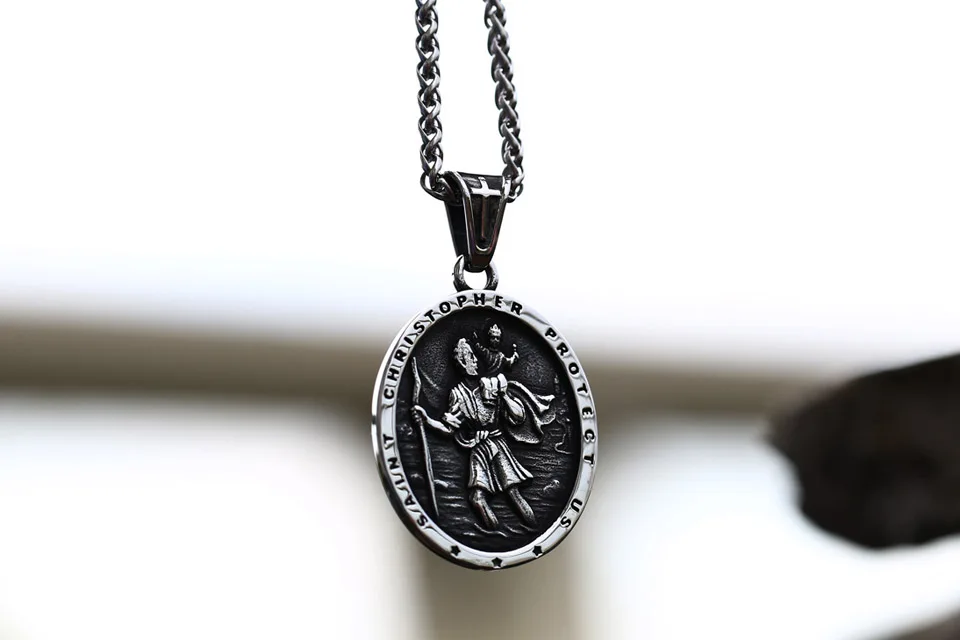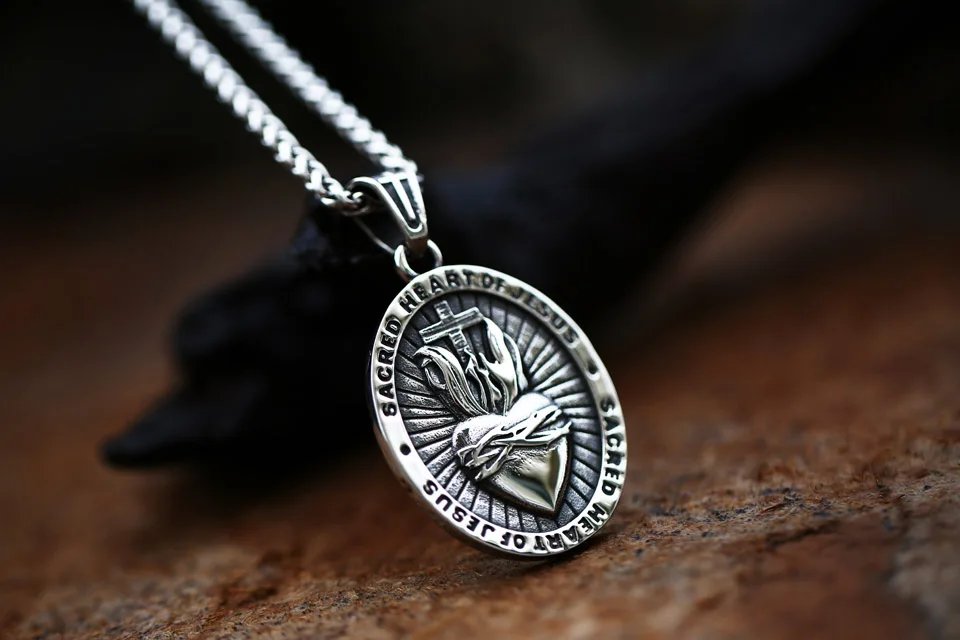 Медаль Святого Кристофера, амулет со священным сердцем Иисуса, католическая защита, религиозный мужской кулон, ожерелье, ювелирные изделия BP8-617