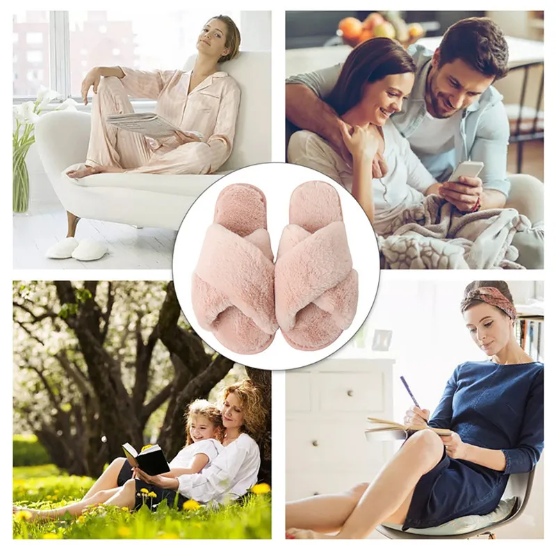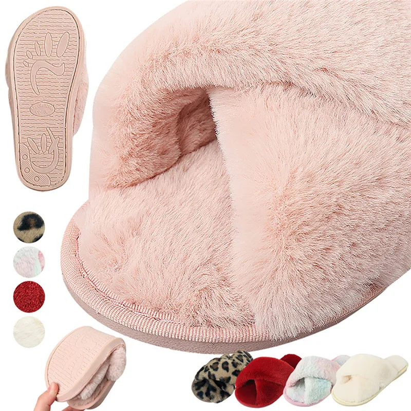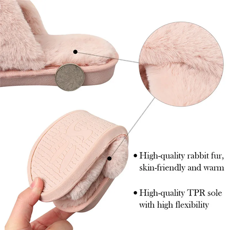 Зимние меховые тапочки с перекрестными ремешками, женская домашняя ...