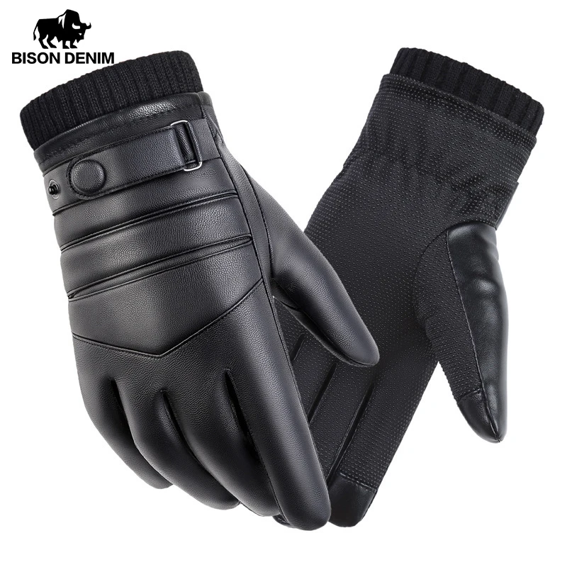 Мужские перчатки BISON DNEIM, зимние перчатки из искусственной кожи с сенсорным экраном для велоспорта, ветрозащитные плотные перчатки для мужчин S052