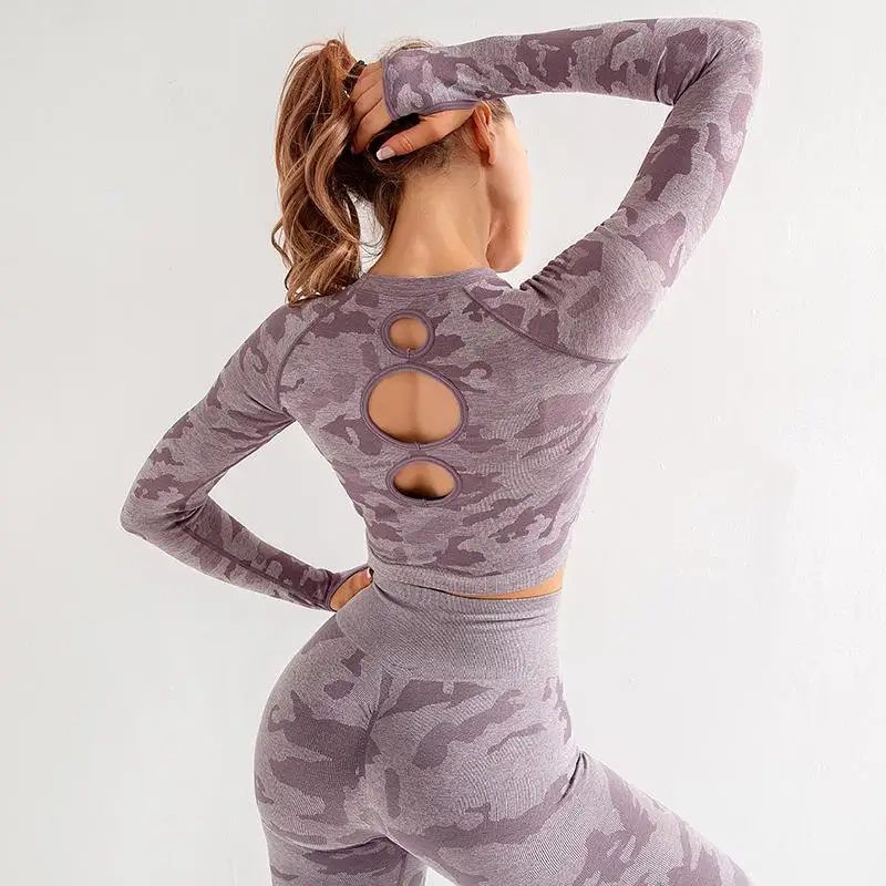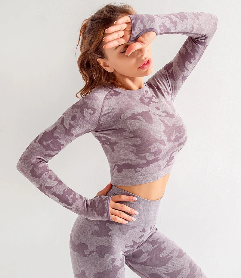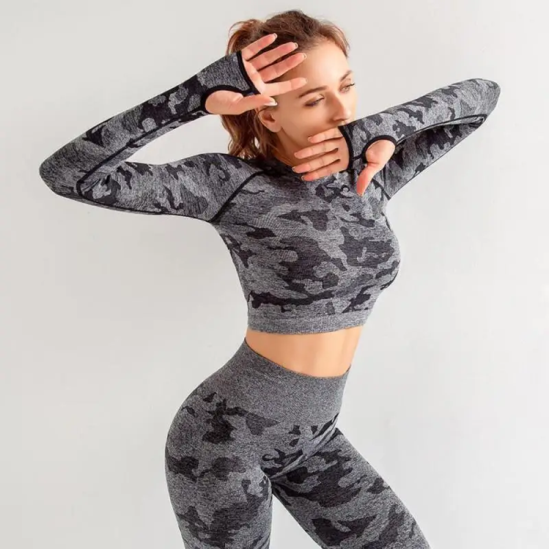 Бесшовный Камуфляжный Топ для фитнеса, женские рубашки для спортзала, кроп-топ для йоги, одежда для тренировок, женская одежда для спортзала, спортивные рубашки, женская спортивная одежда