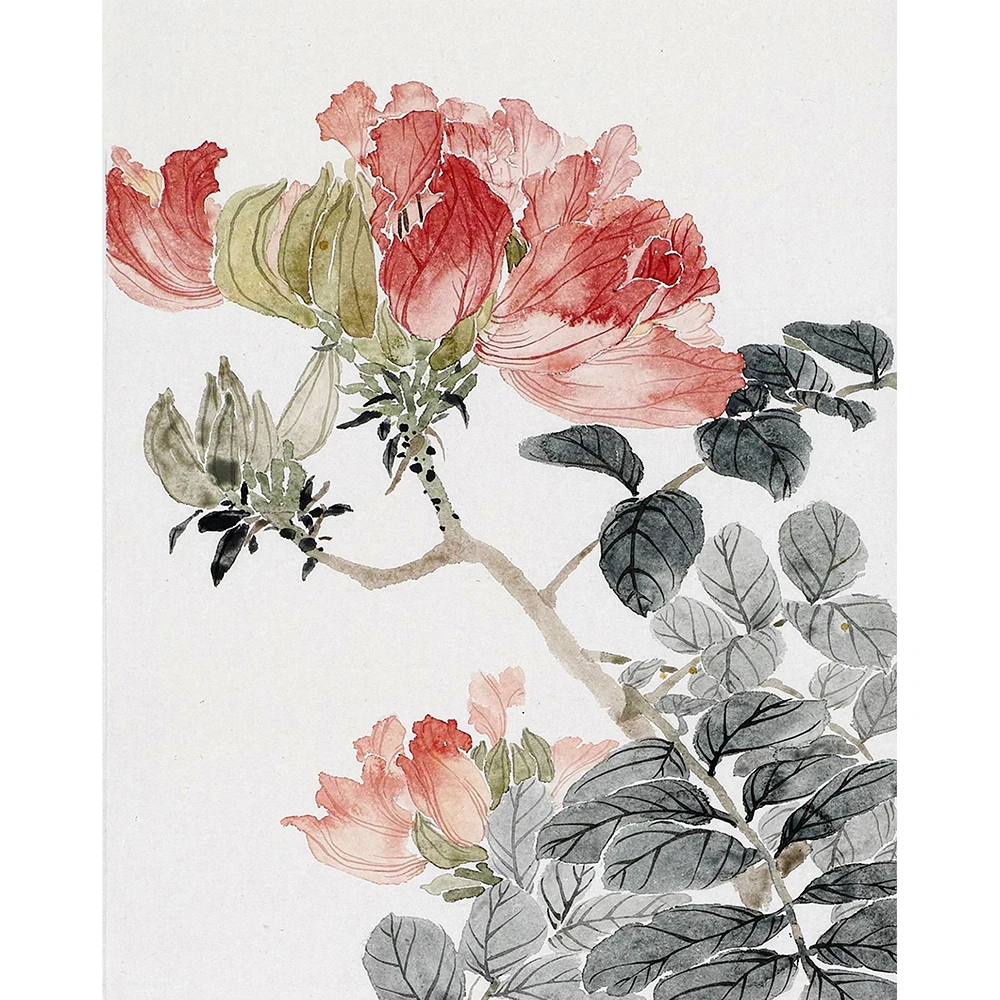Постеры в китайском стиле с изображением цветов и зеленых растений, настенные художественные картины из массива дерева с рамкой для магазина украшений, спальни, гостиной