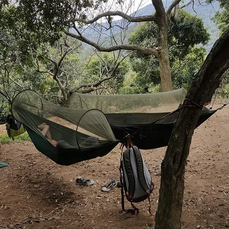 Кемпинговый гамак с москитной сеткой, двойные гамаки с ремешками для деревьев, портативные гамаки для походов, путешествий, заднего двора, пешего туризма