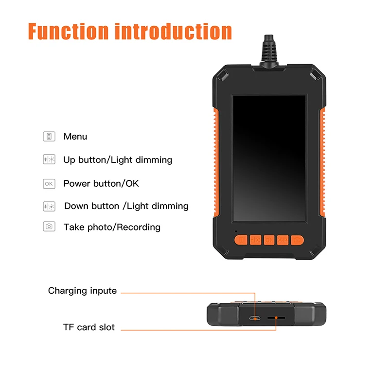 1. 1080P HD эндоскоп:Промышленный эндоскоп с 4,3 дюймовый полноцветный светодиодный экран с высоким разрешением, и усовершенствованный датчик предоставить четкие снимки, богатый по контрасту и с высокой точностью. С высоким разрешением 1920x1080 пикселей, каждая Поверхностная структура, проверенная с нашей инспекционной камерой, является более четкой, высокой контрастностью и верной своему цвету на мониторе. Он может идентифицировать даже небольшие дефекты.