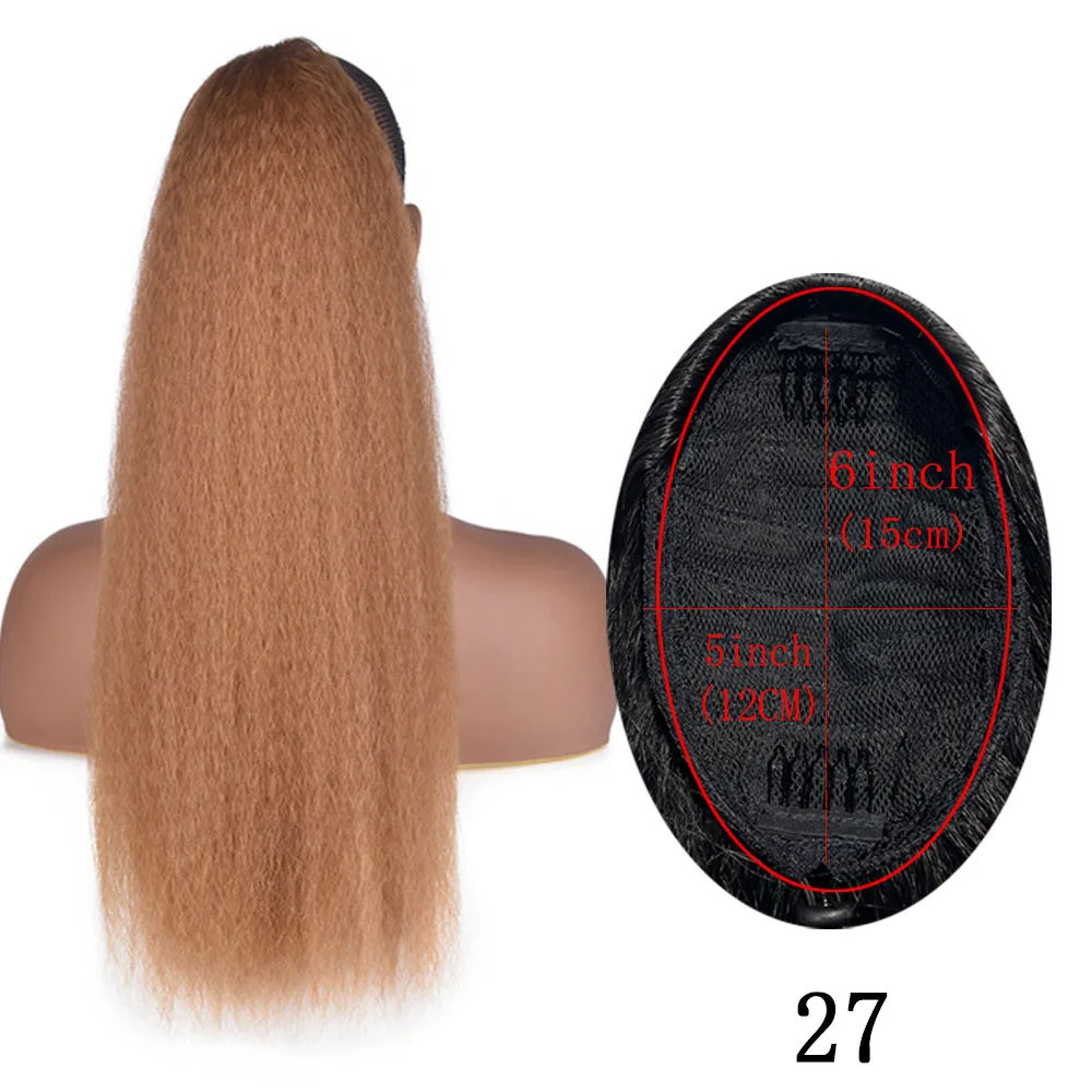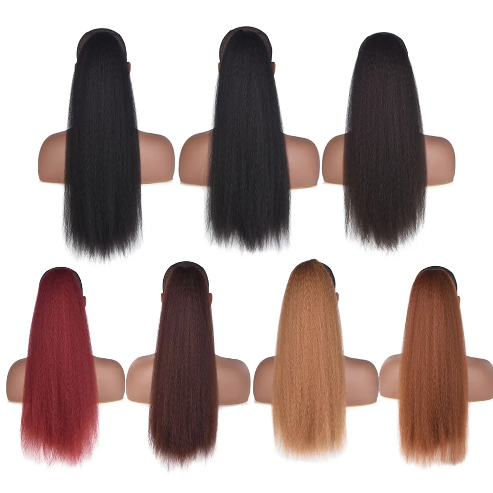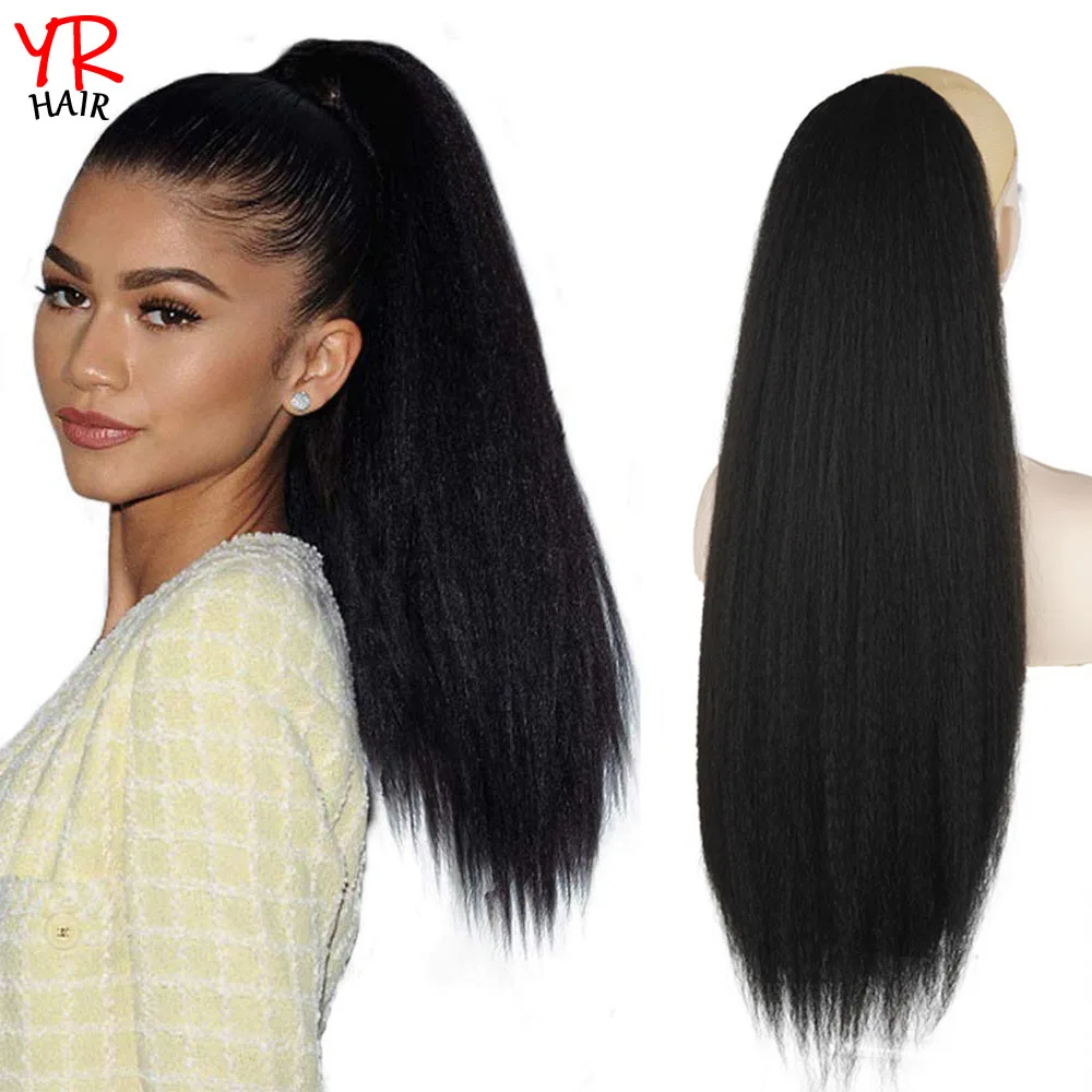Синтетические натуральные длинные курчавые прямые удлинители на кулиске для конского хвоста для женщин Yaki кудрявые волосы 24 дюйма Удлинитель на клипсе для конского хвоста