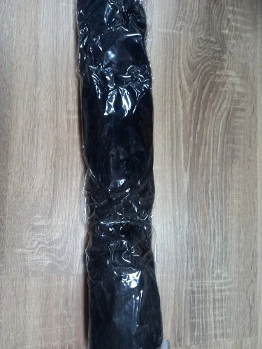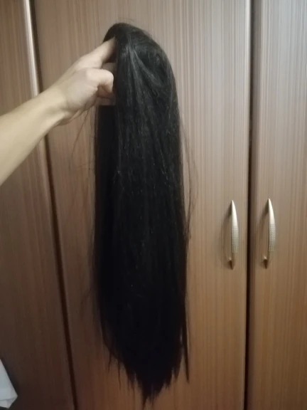 Очень красивый, пушистый хвост. На ощупь волосы мягкие, похожи на натуральные. Удобное крепление на шнуре резинке и клипсе. Длина 60 см. Имеет слегка волнистую структуру, как у афроволос. Цвет почти черный , темно-темно коричневый. Доставка быстрая.
