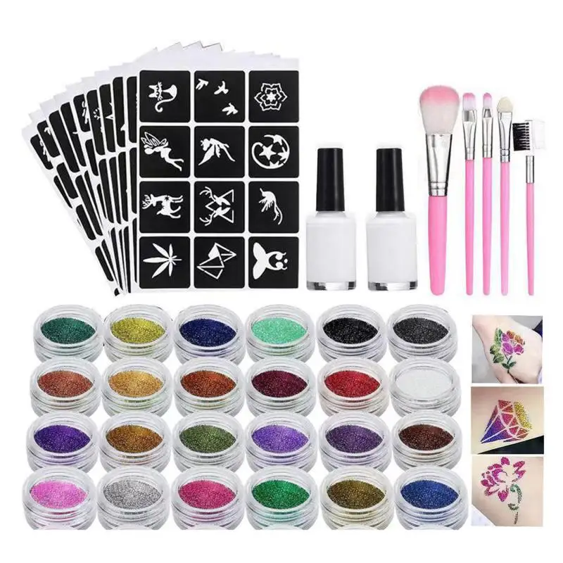 * Набор тату с блестками 24/30 цветов: вы можете использовать Блестящие Татуировки везде, чтобы создать особый блестящий дизайн, подходящий для лица, щек, рук и рук. Использование * искусства, боди-живописи, теней для век, декоративно-прикладного искусства, скрапбукинга, вечеринок, поздравительных открыток, рождественские украшения своими руками.