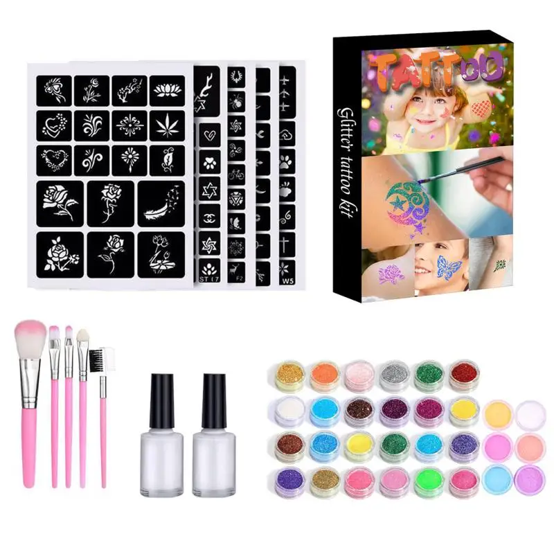 Набор блесток для татуировок, 2430 цветов, 120 шаблонов, Алмазные Блестки для татуировок, блеск для ногтей, боди-арт, краска, вечерние татуировки, инструмент для макияжа