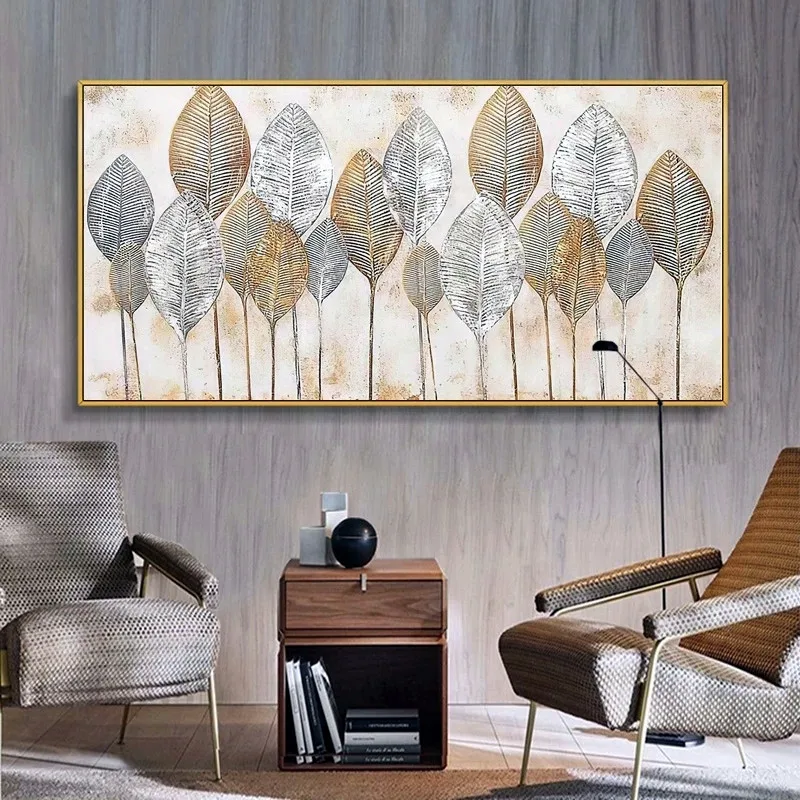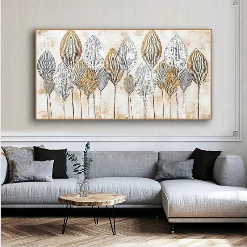 Абстрактный постер с золотыми листьями в современном стиле, настенная Картина на холсте, украшение для дома, коридора, гостиной, спальни