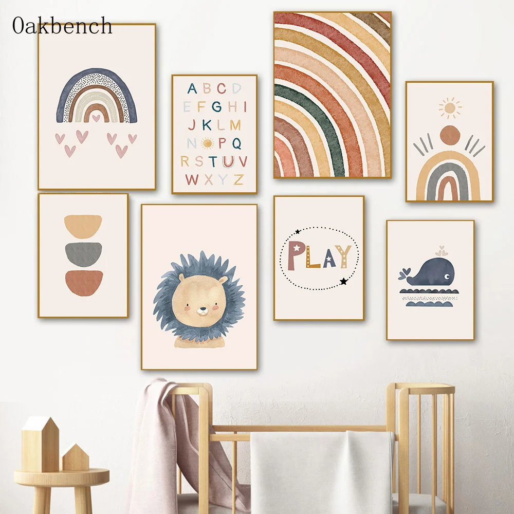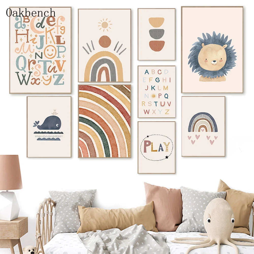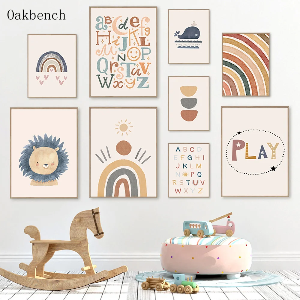 Плакат с алфавитом, картина для детской комнаты, радуга, постеры "с...