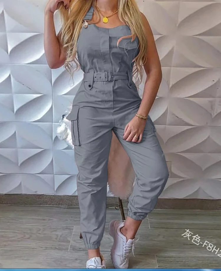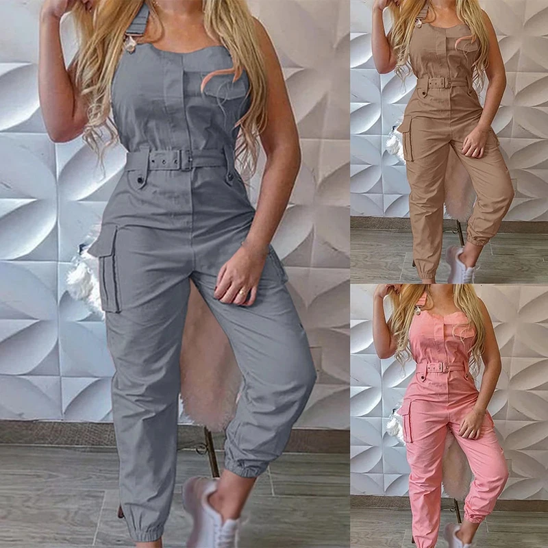 Женский комбинезон на бретелях, Свободный комбинезон, Длинные Комбинезоны, рабочая одежда, дизайн с карманами, летние однотонные брюки-карго, Женские повседневные Комбинезоны, 2021